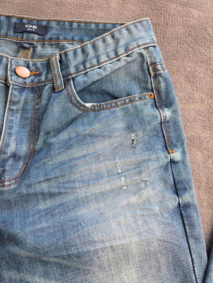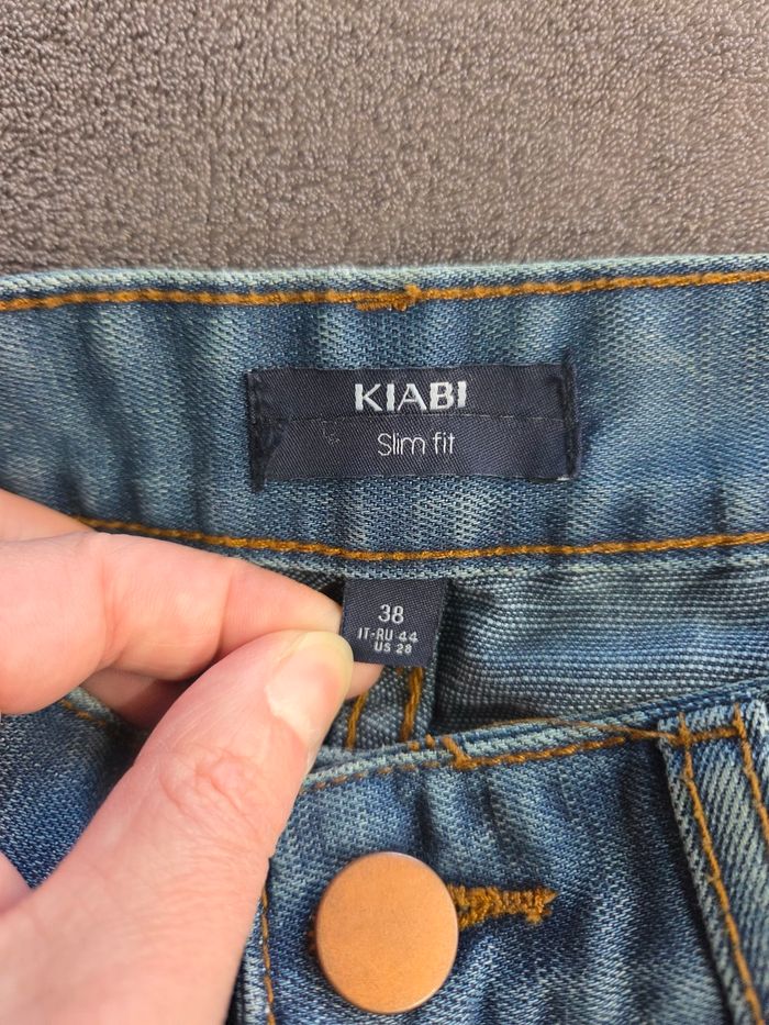 Jean slim bleu de la marque KIABI, taille 38. Coupe près du corps, confortable et facile à porter au quotidien. Bon état général, légèrement délavé pour un style tendance. Idéal avec baskets ou bottines. #jeans #kiabi #slim