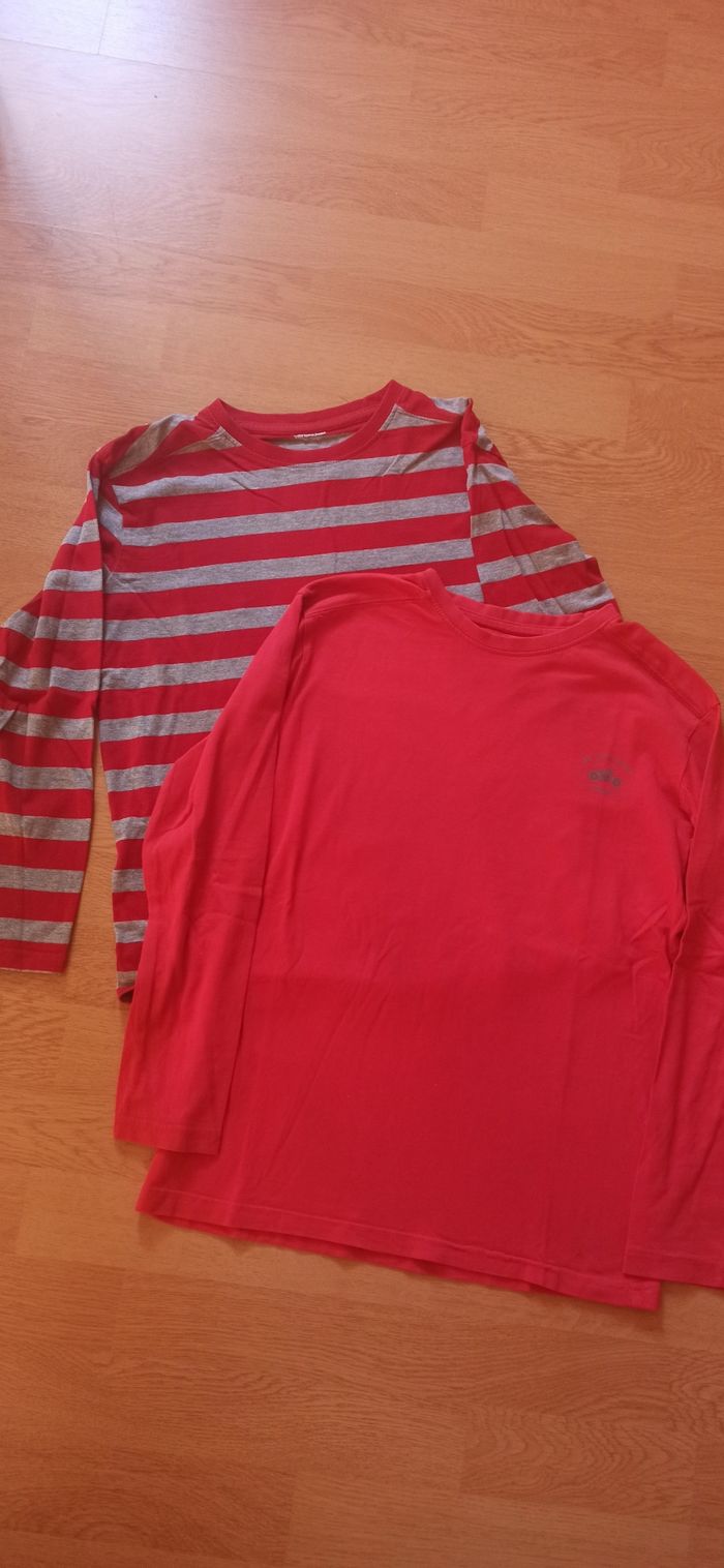 Lot de 2 tee shirt manches longues taille 12 ans Très bon état Tee shirt rayé couleur rouge foncé et gris Tee shirt uni couleur rouge clair #pimprenelle240garcon12ans #lotteeshirt#lotteeshirt12ans#teeshirtmancheslongues#vertbaudet