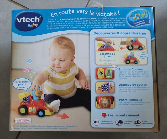 Voiture Vtech, Titours, champion de course, fonctionne parfaitement, avec piles et boîte d'origine. 12/36 mois