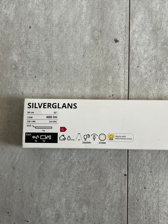 Je vends ce bandeau LED IKEA Silverglans de 80 cm de long pour parfaire votre éclairage. - Type de produit : bandeau LED - Marque : IKEA - Couleur : Blanc - Matière : Plastique - Dimensions : Longueur 77 cm, largeur 1,8 cm, hauteur 1,8 cm, longueur du câble 2 m, puissance 7,5 W, flux lumineux 480 lm. Très bon état, juste déballer jamais monté. N'hésitez pas à me contacter pour plus d'informations ou de photos. Envoie rapide et soigné