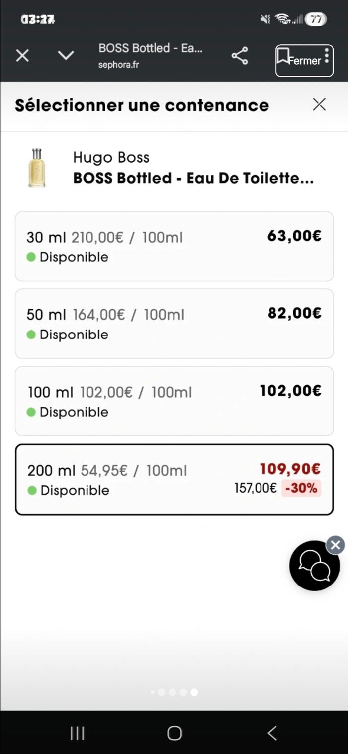 Eau de toilette Hugo boss 200ml 109e chez nocibe Ne plaît pas Juste une pulvérisation