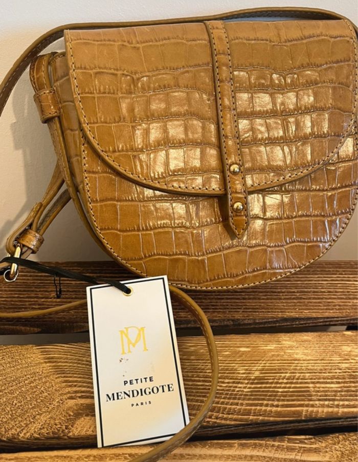 Sac bandoulière Petite Mendigote Callisto neuf avec étiquette | Taille unique | Camel “épice” effet croco - photo numéro 1