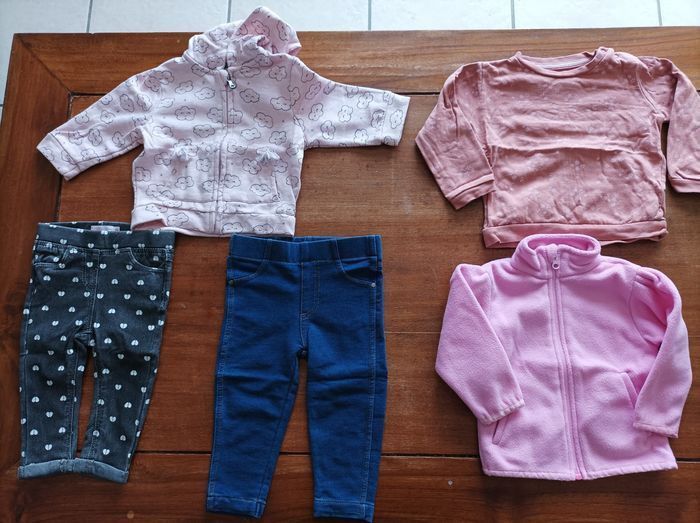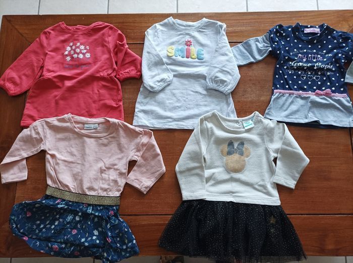 Propres et lavés Bon état 2 robes tuniques Tex 9 mois neuves 1 tunique barbouillage 9 mois TBE 1 robe name it 9/12 mois BE 1 robe épaisse orchestra 9 mois BE 1 grenouillère Kiabi 9 mois TBE 1 grenouillère sans marque 9 mois TBE 1 tregging Gémo 9 mois BE 1 tregging Zeeman 9 moisTBE 1 sweat fin C&A 12 mois taille petit BE 1 polaire pommette 9 mois neuve 1 gilet Sweat zippé Kiabi 9 mois BE 1 combinaison H&M 9 mois neuve 1 coupe vent Zeeman 9 mois Neuve 1 veste sans manche baby club 80 cm BE