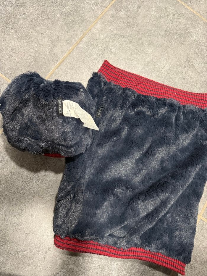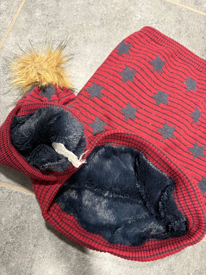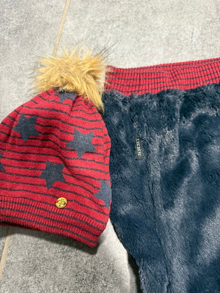 Bonnet et tour de cou snood IKKS taille 2/4 ans doublé polaire Le tour de cou et le bonnet sont tous les deux doubles polaire Ils sont très chaud et tout doux Couleur bordeaux et bleu marine