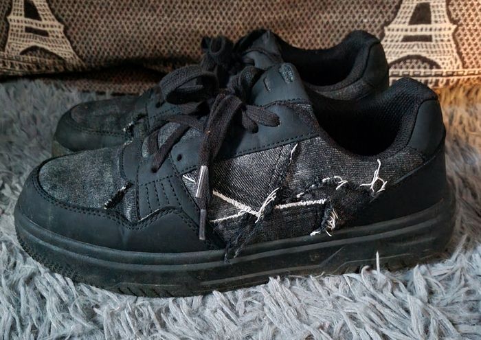 Basket basse noir et gris style StreetWear avec un effet fils effiloché ,pointure 42 marque NewYorker.