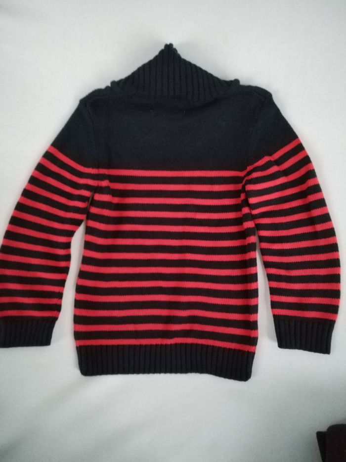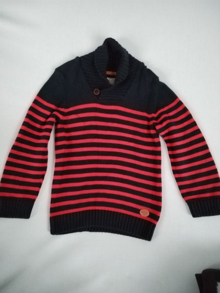 Ce sont mes 2 derniers articles en 6 ans, d'où le prix bradé. On les a acheté neufs chez H&M dans le centre ville de Lens. Prix en magasin : 34,98 € L'ours 19,99 € Le rayé 14,99 € Composition du pull ours (hors décorations) : 95 % coton 5 % polyamide Composition du rayé : 100 % coton Le pull rayé taille grand.
