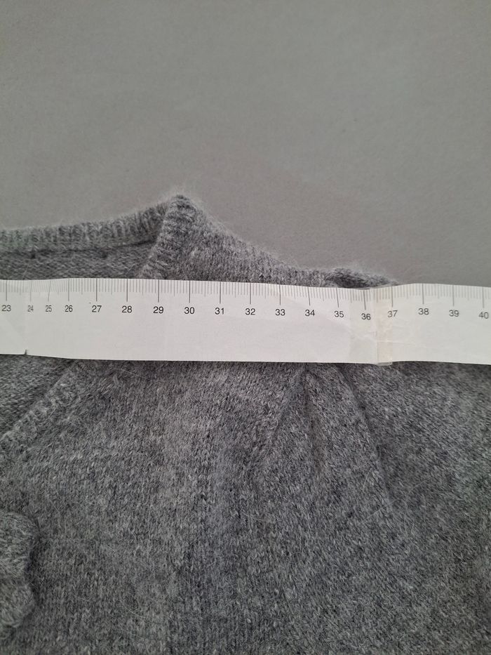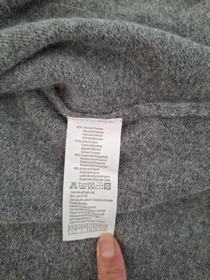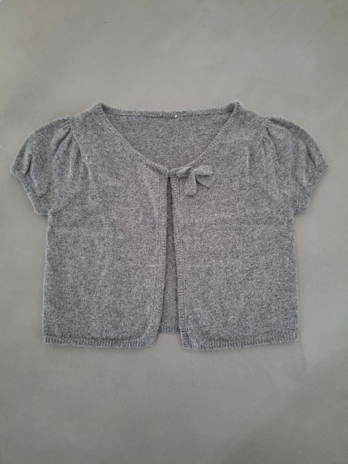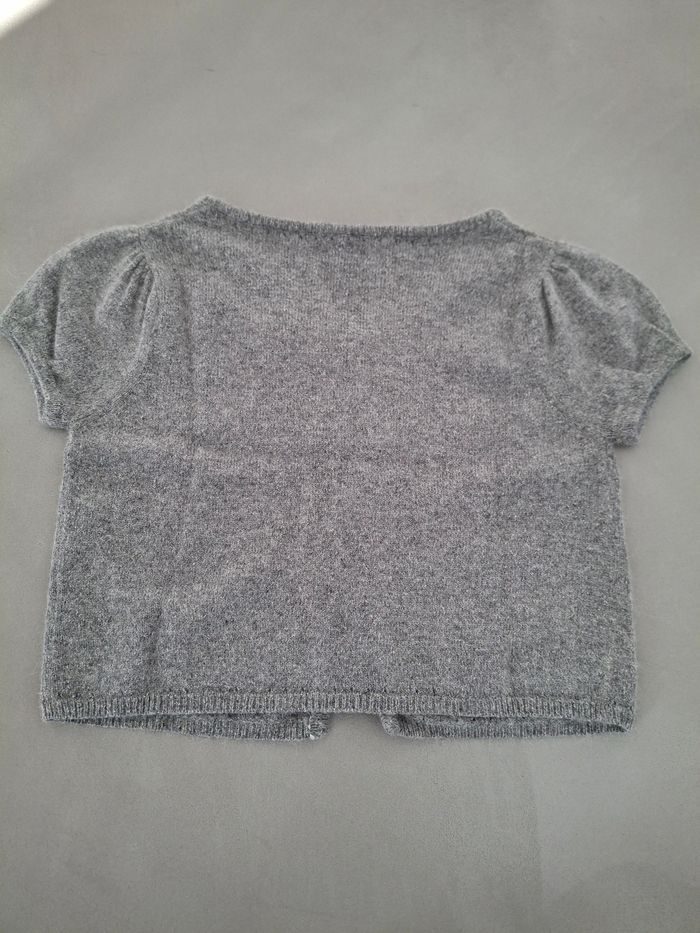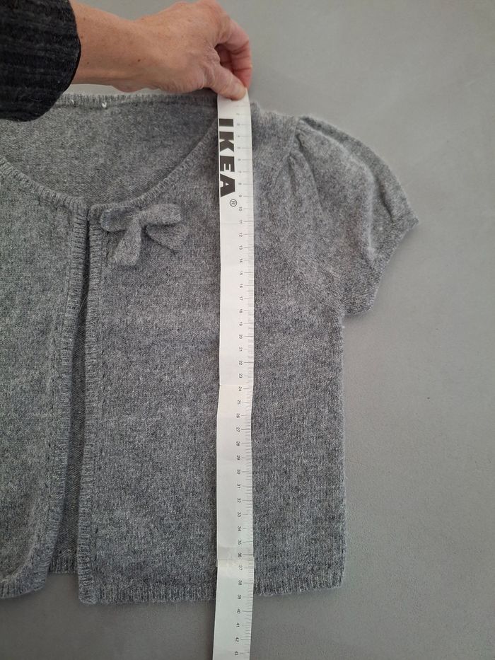 Gilet court / boléro hiver manches courtes. Peu porté,excellent état ! Dimensions en photo. Composition : Viscose 32%, Coton 32%, Polyamide 19% et Angora 18%.