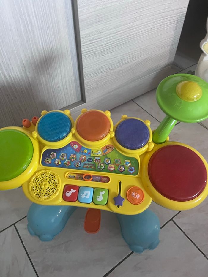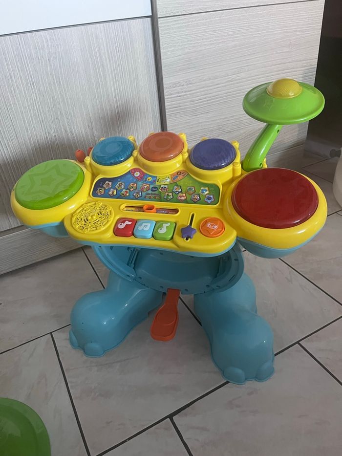 Je vends cette batterie de jouet musical en forme d'éléphant. - Type de produit : Jouet d'éveil - Âge recommandé : De 0 à 3 ans - Marque : Autre - Fonctionnalités : Sonore, musical, avec différents instruments de musique (tambours, cymbales, etc.) Très bon état. Un jouet idéal pour stimuler la créativité musicale des tout-petits ! N'hésitez pas à me contacter pour plus d'informations.