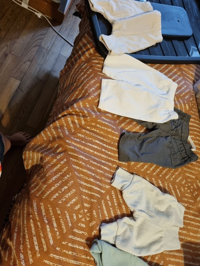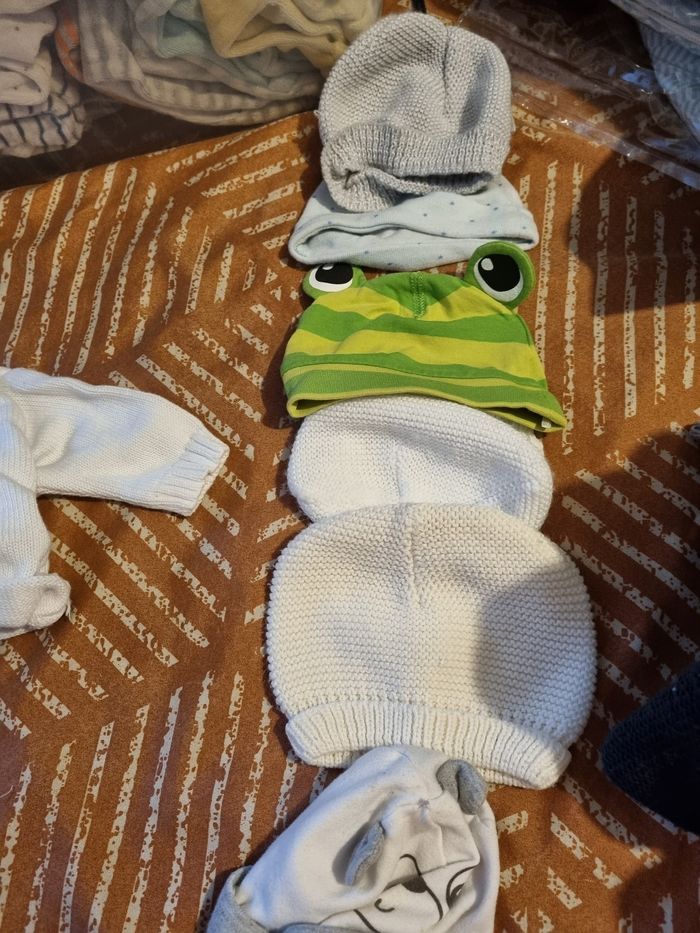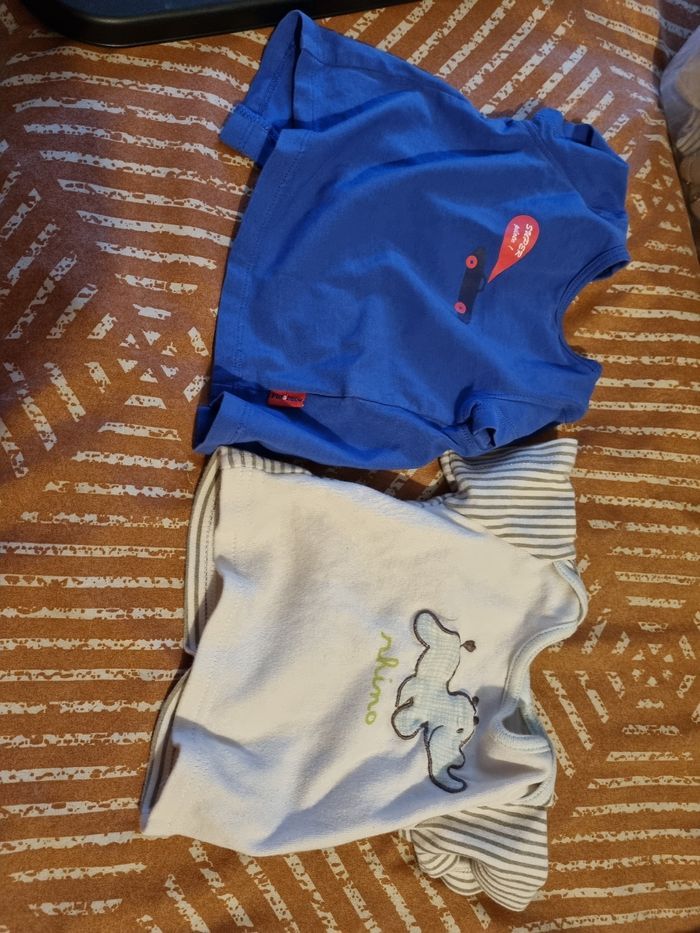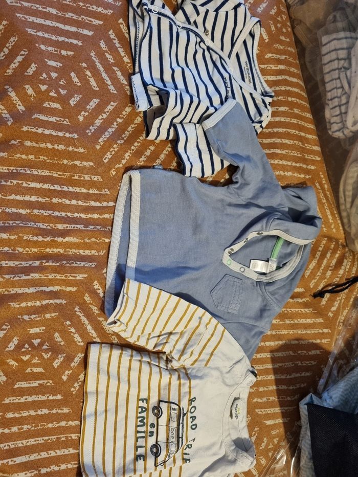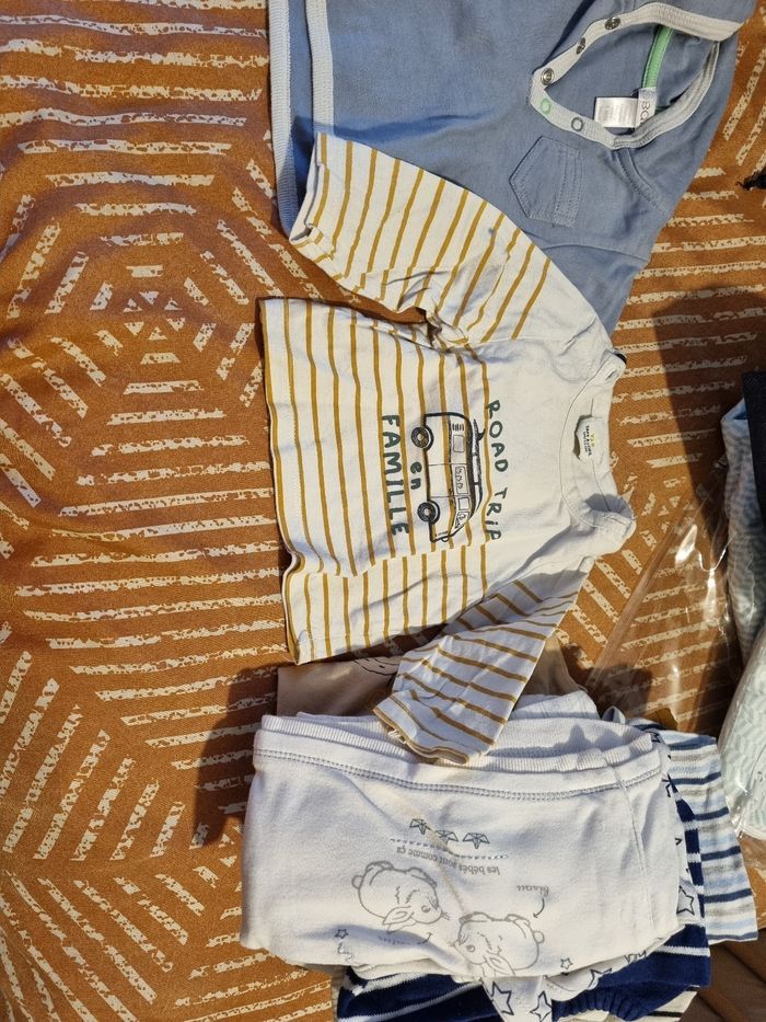 20 pyjamas ,11 bodys manche longues et.5 bodys manches courtes. 6 pantalons 17 tee shirt 3 shorts 4.ensembles 7 gilets . 5 bonnets . 1 pair de chausson