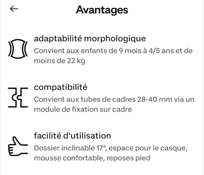 Suite a l'achat d'un vélo cargo, je vends un porte bébé de vélo hamax chill avec l'accroche rapide qui se fixe sur le vélo. Le hamax chill permet d'incliner le siège. Il convient aux enfants de 9 mois à 22kg.