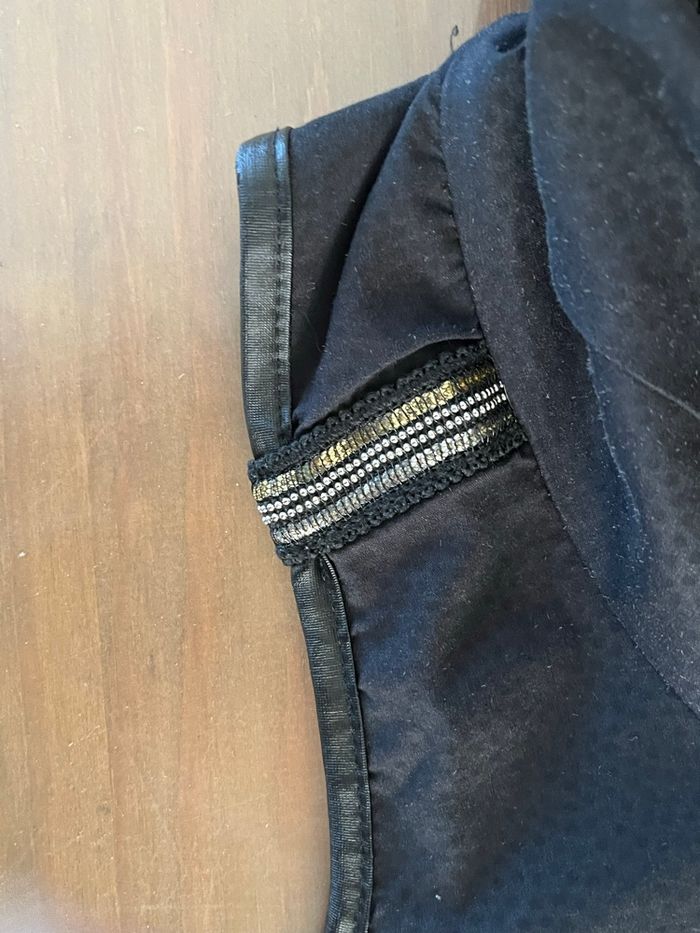Peu portée comme neuve. 73% coton 23% polyester 4% élasthanne. Longueur 93 cm. Jolis détails dorés aux épaules ( voir photo 3 ). Petit points noirs ( voir photo 4 ). D’autres vêtements de Taille 40 en vente dans mon dressing. N’hésitez pas à demander plus de photos ou d’informations.
