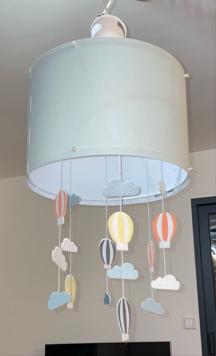 Je vends ce lustre enfant au design nuage et montgolfière bleu. - Type de produit : Lustre - Couleur : Bleu - Décoration : Nuages et montgolfières Bon état Diamètre 30cm Hauteur total hors câble 50cm N'hésitez pas à me contacter pour plus d'informations ou de photos.