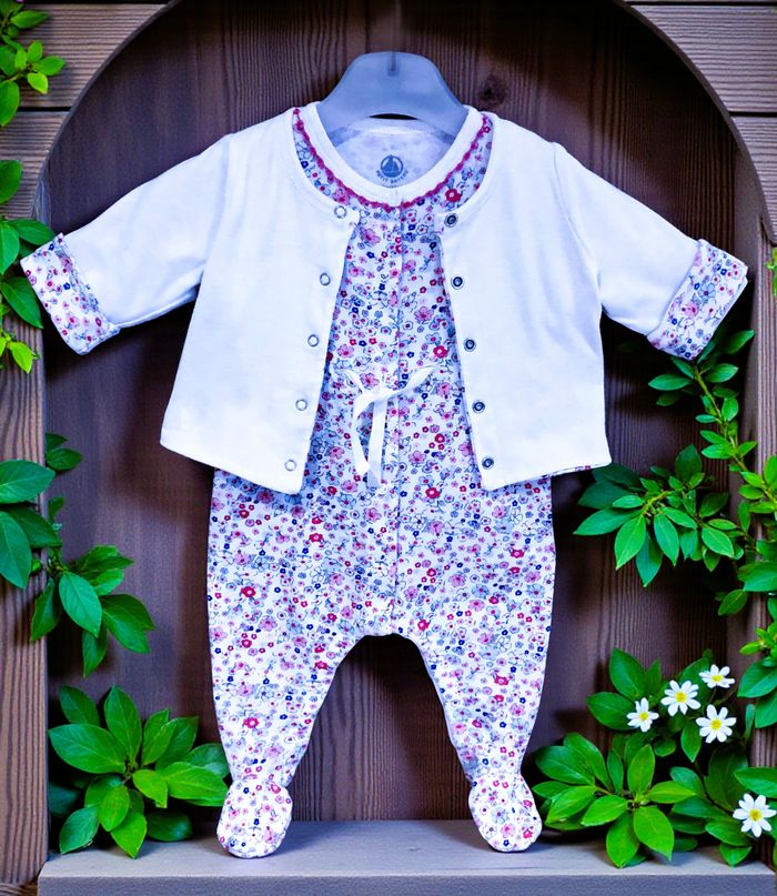 PETIT BATEAU - ENSEMBLE 2P BÉBÉ FILLE IMPRIMÉ LIBERTY AVEC VESTE RÉVERSIBLE 3M - photo numéro 1