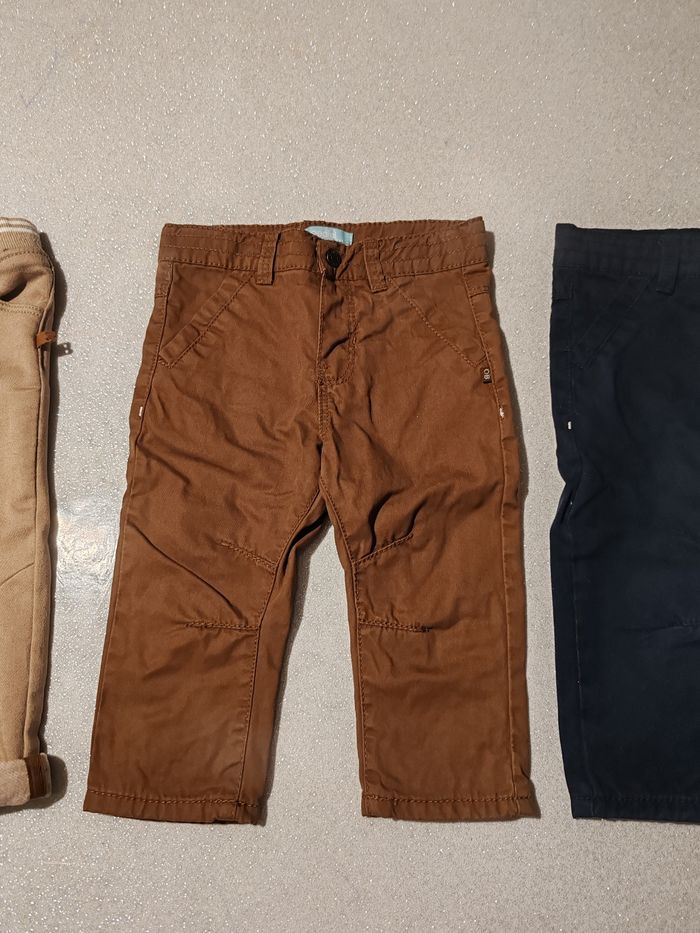 Lot de 3 Pantalons Obaïbi 12 mois État comme neuf, très peu porté 1 Beige 1 Marron 1 Bleu marine