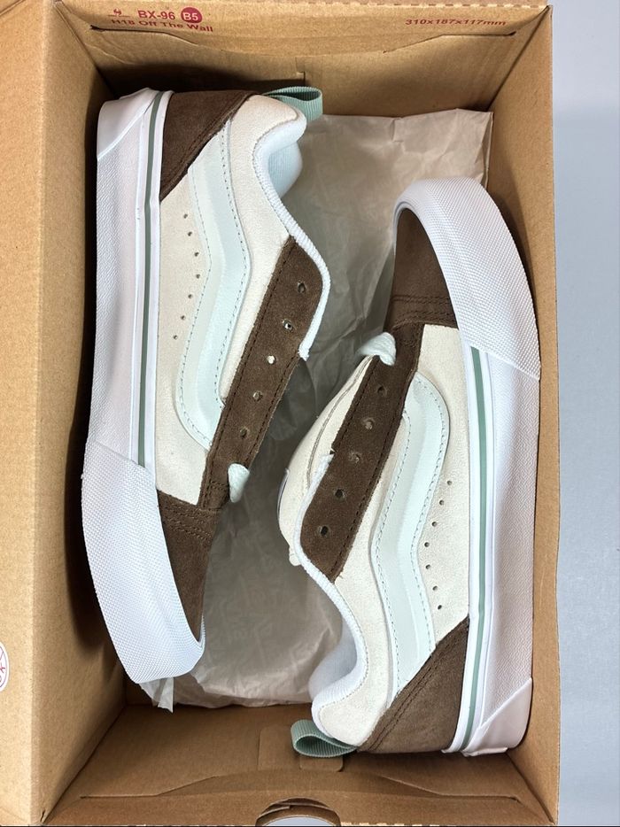 Baskets Vans Knu marron et blanches 👟. Pointure 37 📏, baskets neuves jamais portées, vendues dans leur boîte d'origine 📦 Le modèle Knu iconique de Vans avec une semelle épaisse et une forme rétro hyper tendance ✨. N'hésitez pas à me contacter pour plus d'infos 💬.