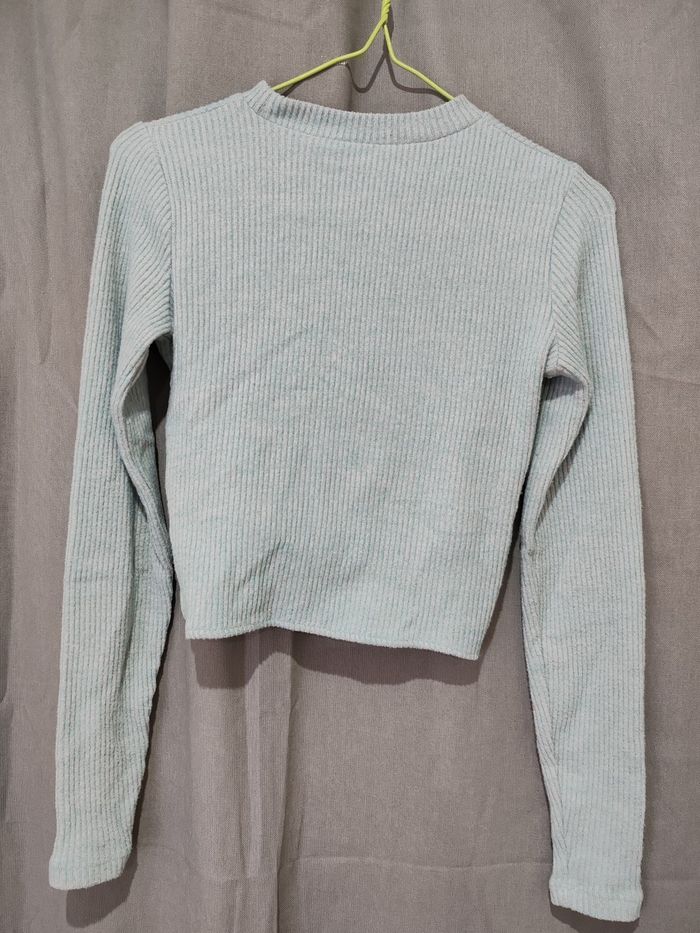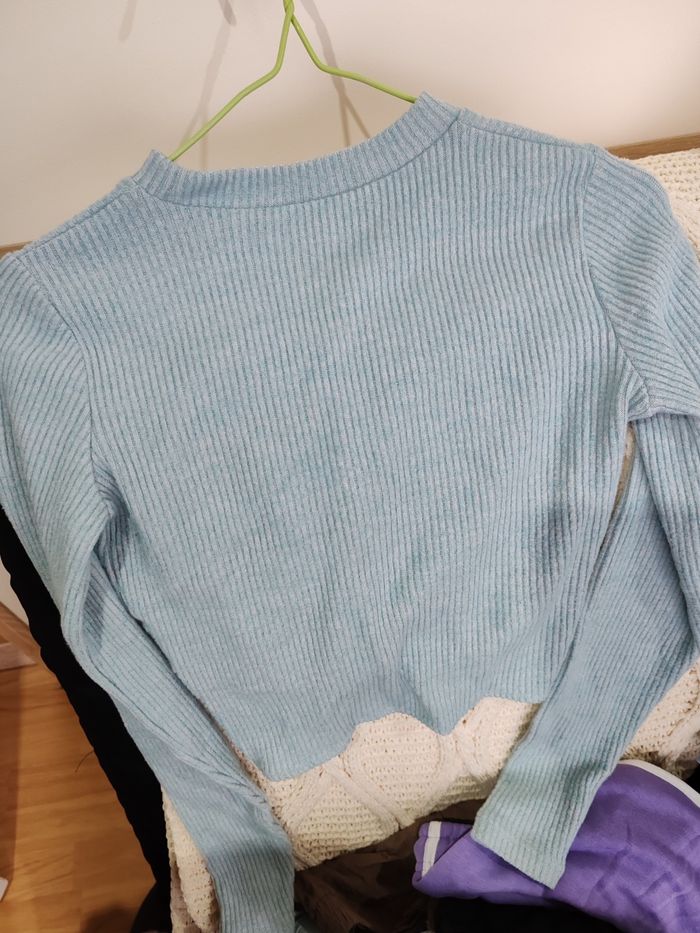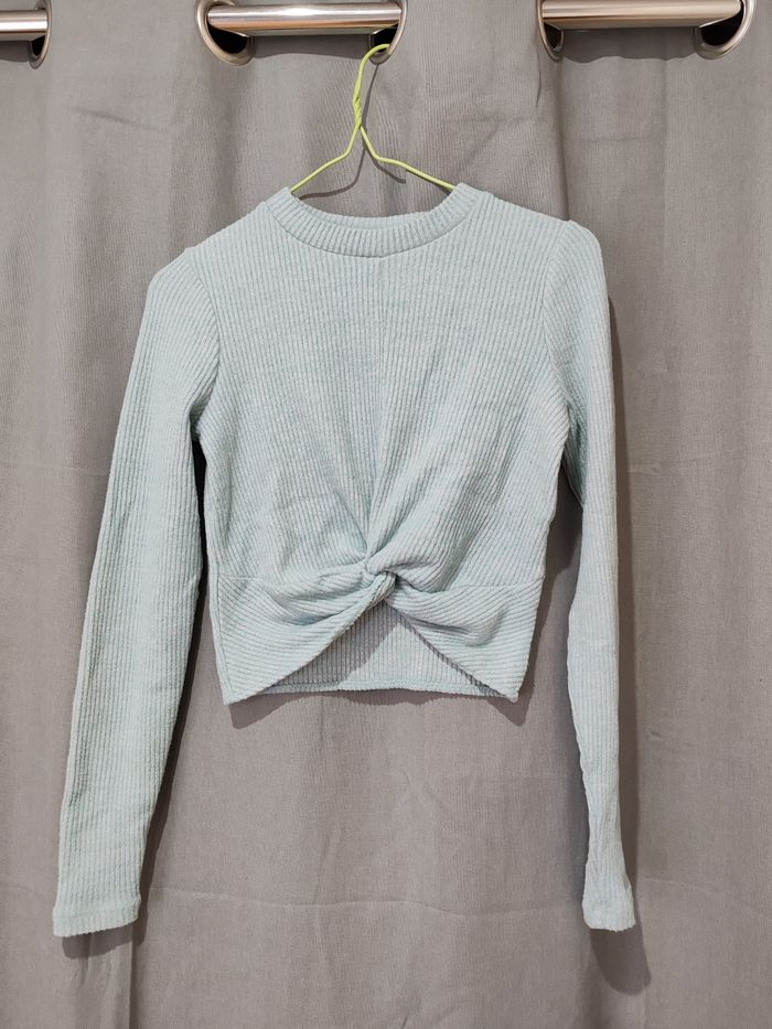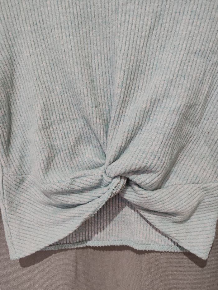 Tee shirt femme manches longues taille xs bleu clair effet nœud devant