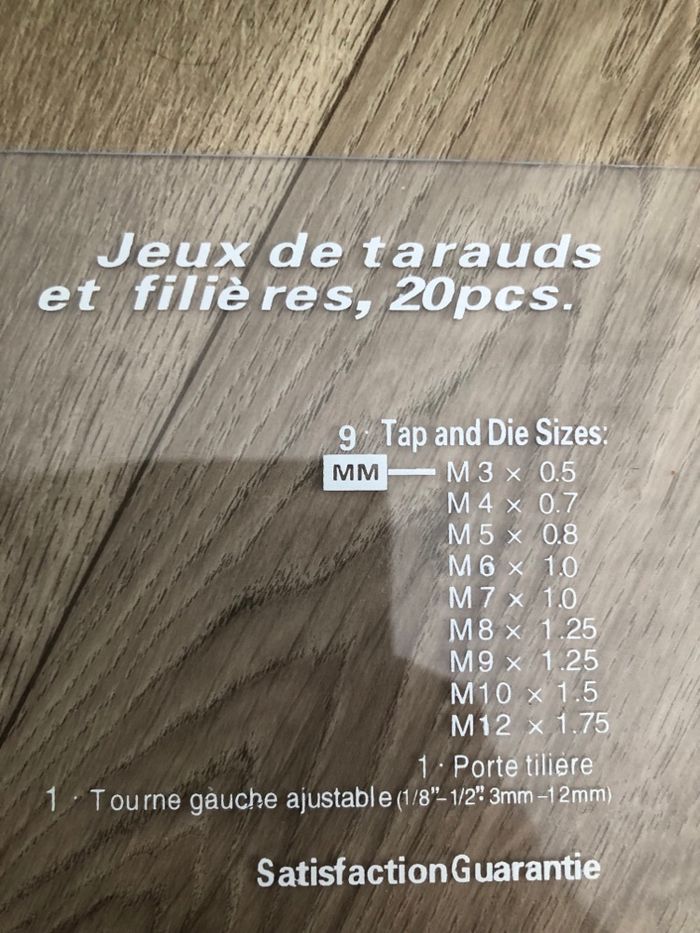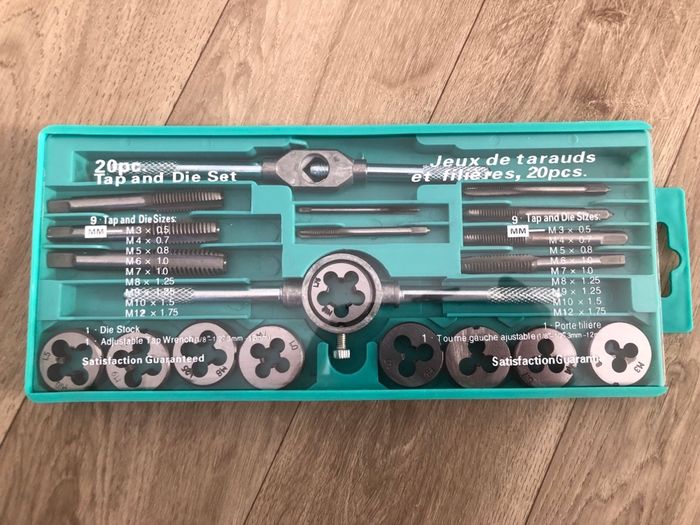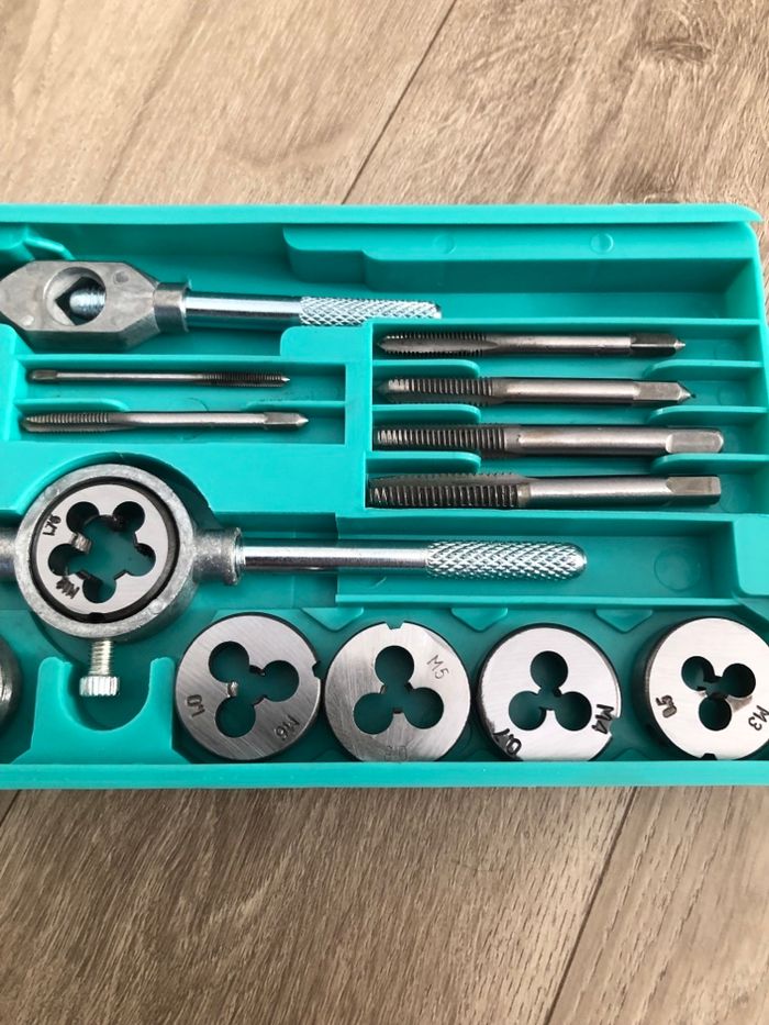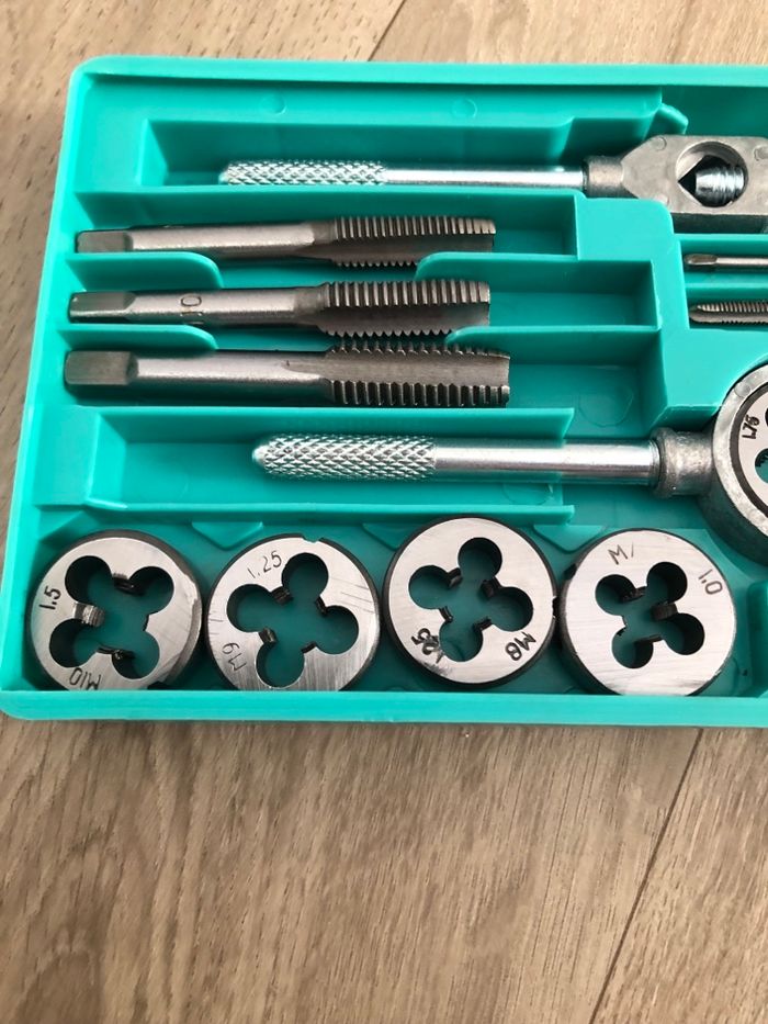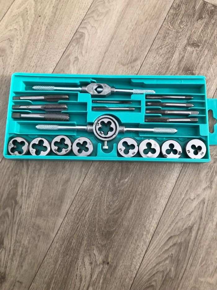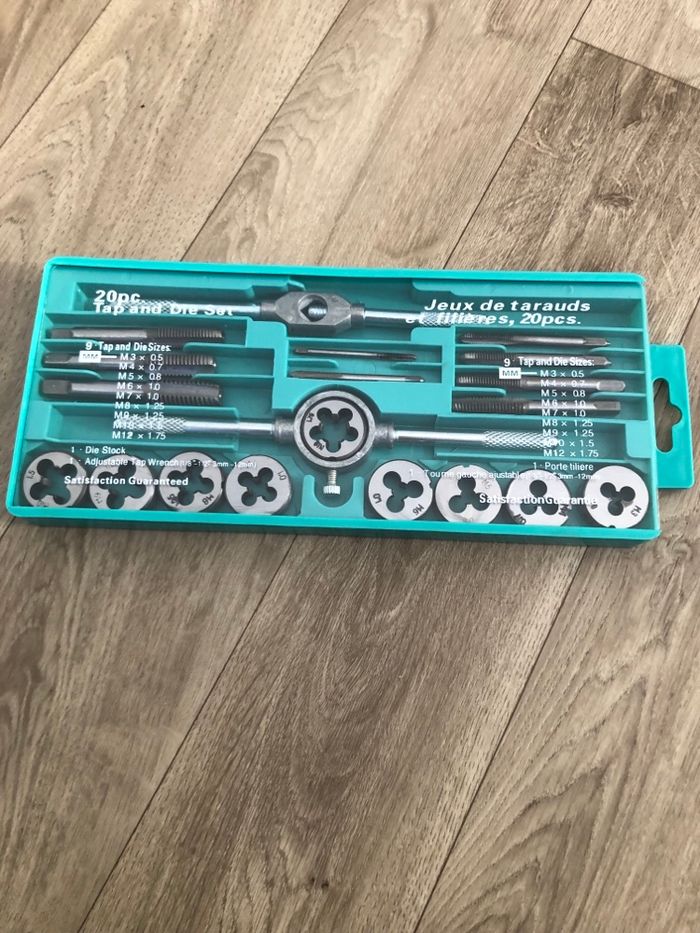 Bonjour vends un coffret ensemble tarauds et filières métriques en acier .