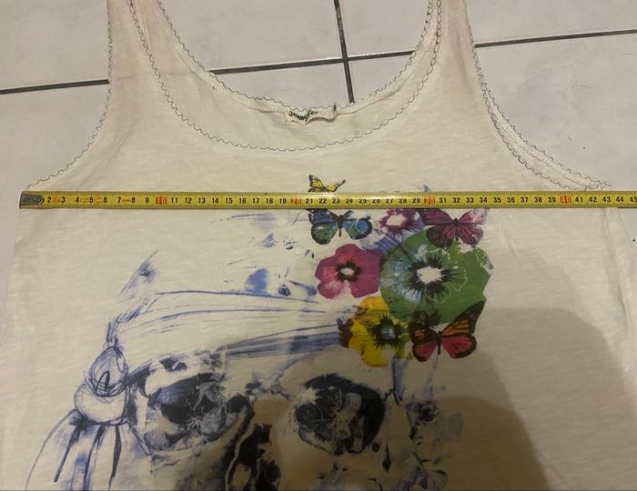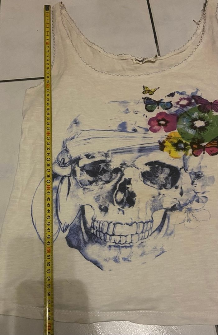 Débardeur tête de mort »Jennyfer »blanc et multicolore,en très bon état. Il est noté sur l’étiquette taille S. Mais🚨selon deux guides de l’IA,il en ressort 36/38. Mesure d’aisselle à aisselle:43,5cm=87cm de tour de poitrine. 🎯Guides de tailles de L’IA disponibles en dernières photos. 📌Il faut savoir que souvent les marques peuvent avoir un guide de taille qui diffère des unes aux autres donc Merci de vérifier les mesures de vos vêtements avec celui-ci car si ça ne convient pas je n’en serais pas responsable. Si vous avez le moindre doute, n’hésitez pas avant achat de me demander les mesures ou renseignements afin d’éviter tous désagréments. PS:Tous les vêtements sont lavés et repassés avant chaque envoi. 🔥🔥Réduction sur les lots activée🔥🔥 -5% de remise pour 2 articles. -10% de remise pour 3 articles. -20% de remise pour 5 articles.