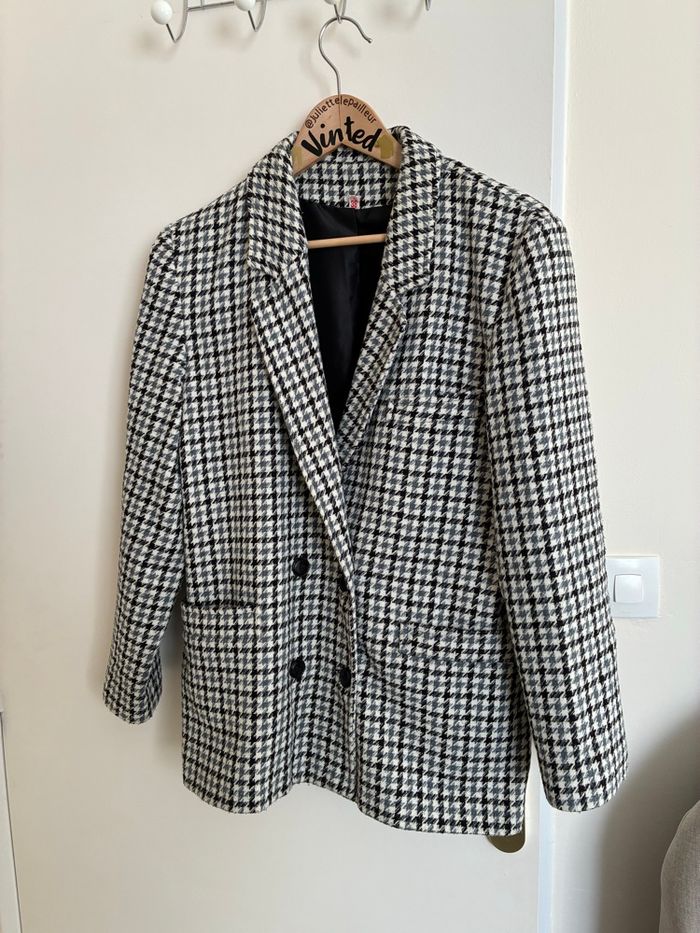 Je vends un blazer motif pied-de-poule, taille 38. Style chic et tendance, parfait pour le bureau ou pour un look élégant au quotidien. État : très bon état, peu porté. Envoi rapide et soigné 📦 N’hésite pas à me contacter pour plus d’informations !