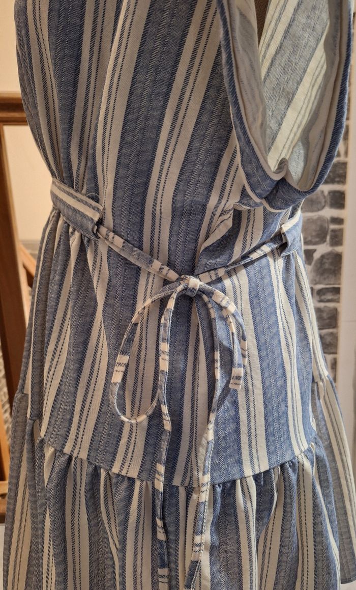 Robe rayée blanche et bleu ciel avec liens à nouer de chaque côté - photo numéro 4