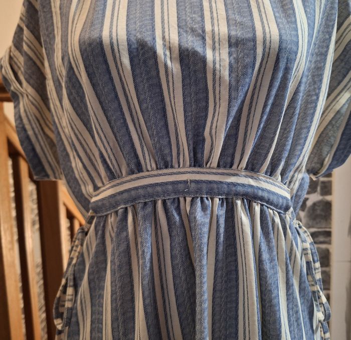 Robe rayée blanche et bleu ciel avec liens à nouer de chaque côté - photo numéro 7