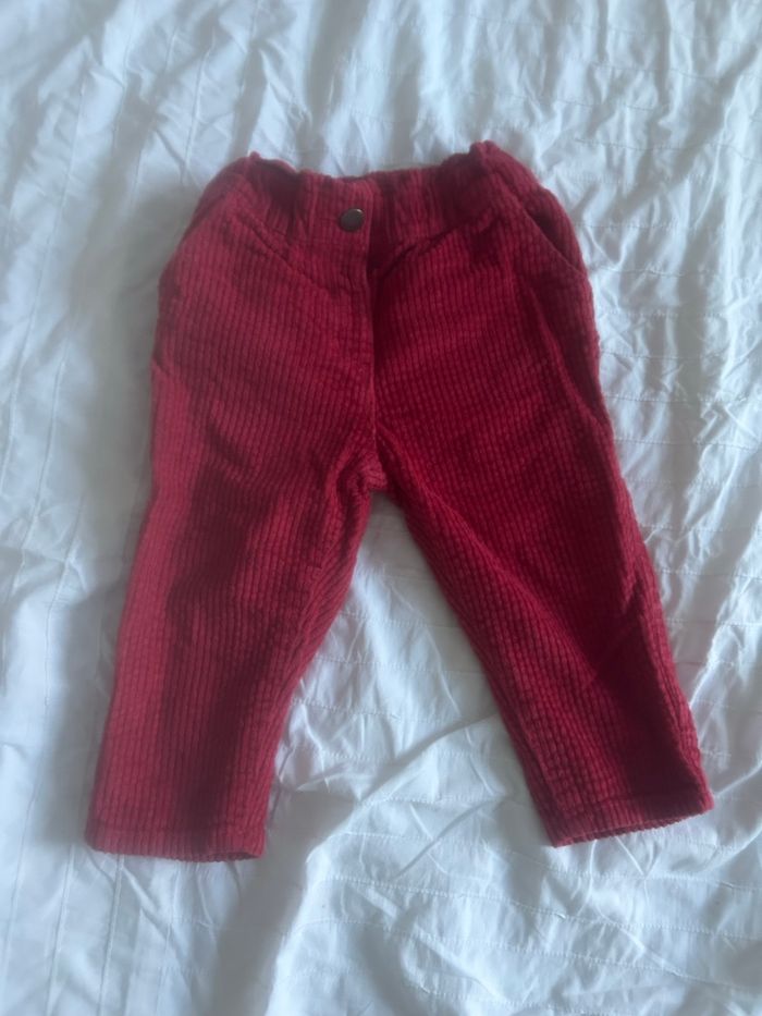 Pantalon en velours côtelé rouge, en très bon état. Du pareil au Même, 18 mois, 100% coton.