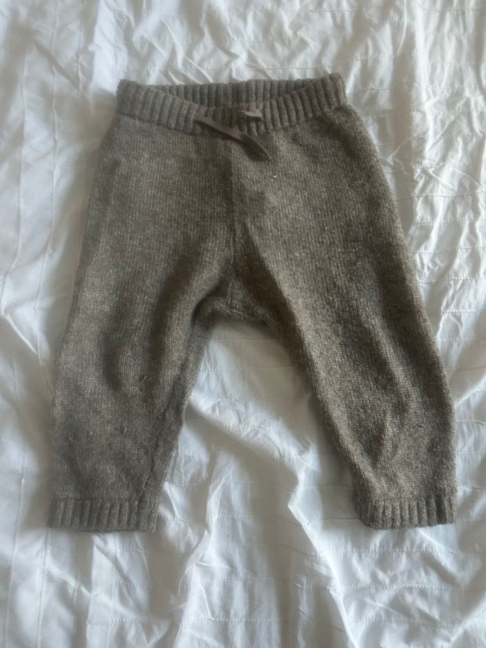 Pantalon beige Kiabi, 12 mois. 80% polyester, 15% laine et 7% polyamide. Il est juste légèrement peluché mais est en bon état.