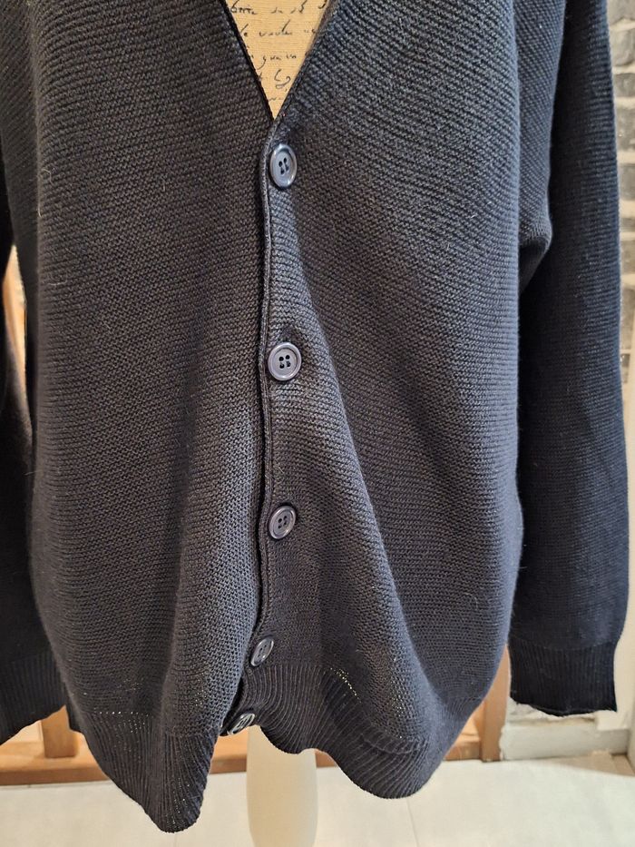 Long cardigan boutonné bleu marine taille L - photo numéro 5