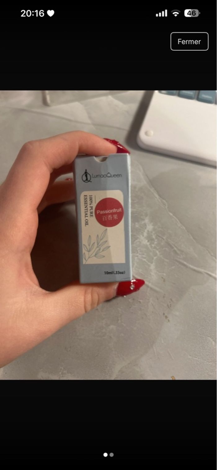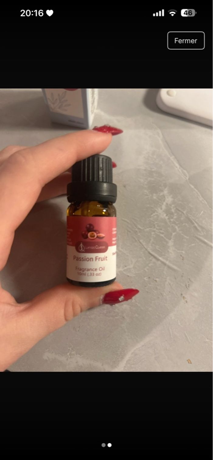 Huile essentielle senteur Fruit de la Passion de la marque LurnaoQueen, neuve avec étiquette. Ouvert seulement pour sentir le parfum, sinon jamais utilisée. Idéal pour la diffusion, la fabrication de bougies, ou vos projets DIY aromatiques exotiques. 💰 Prix d’achat : 1,72 €