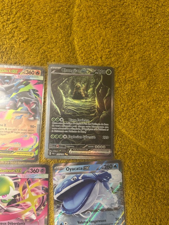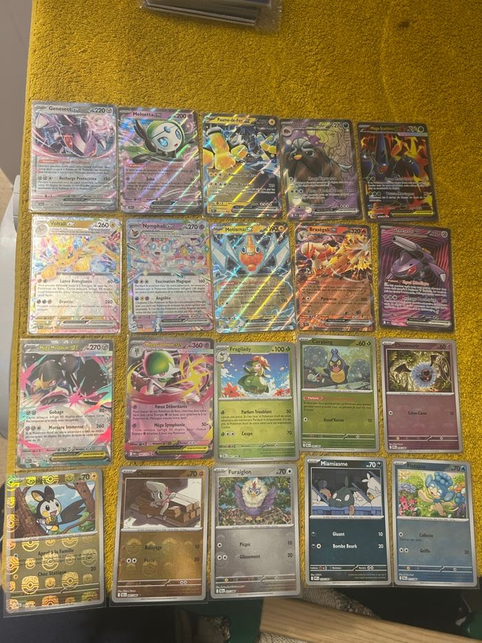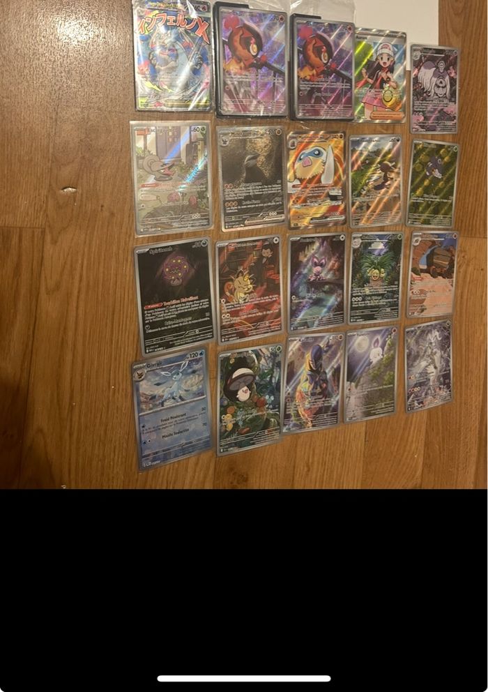 Cartes Pokémon sorties de booster et mis directement sous sleeve. Valeur plus ou moins 300e. J’en demande 230. Possibilité de vendre en 2 fois pour profiter de l’offre Beebs