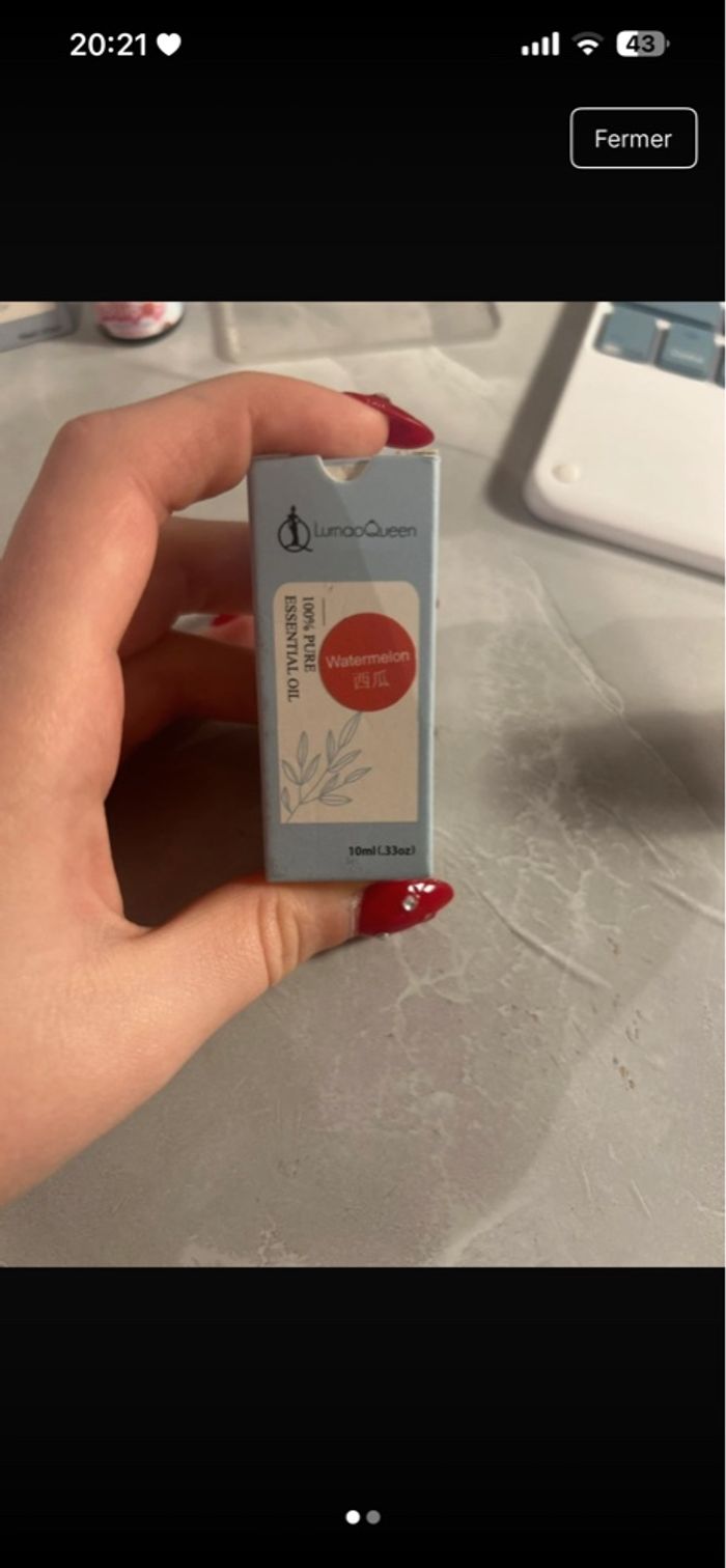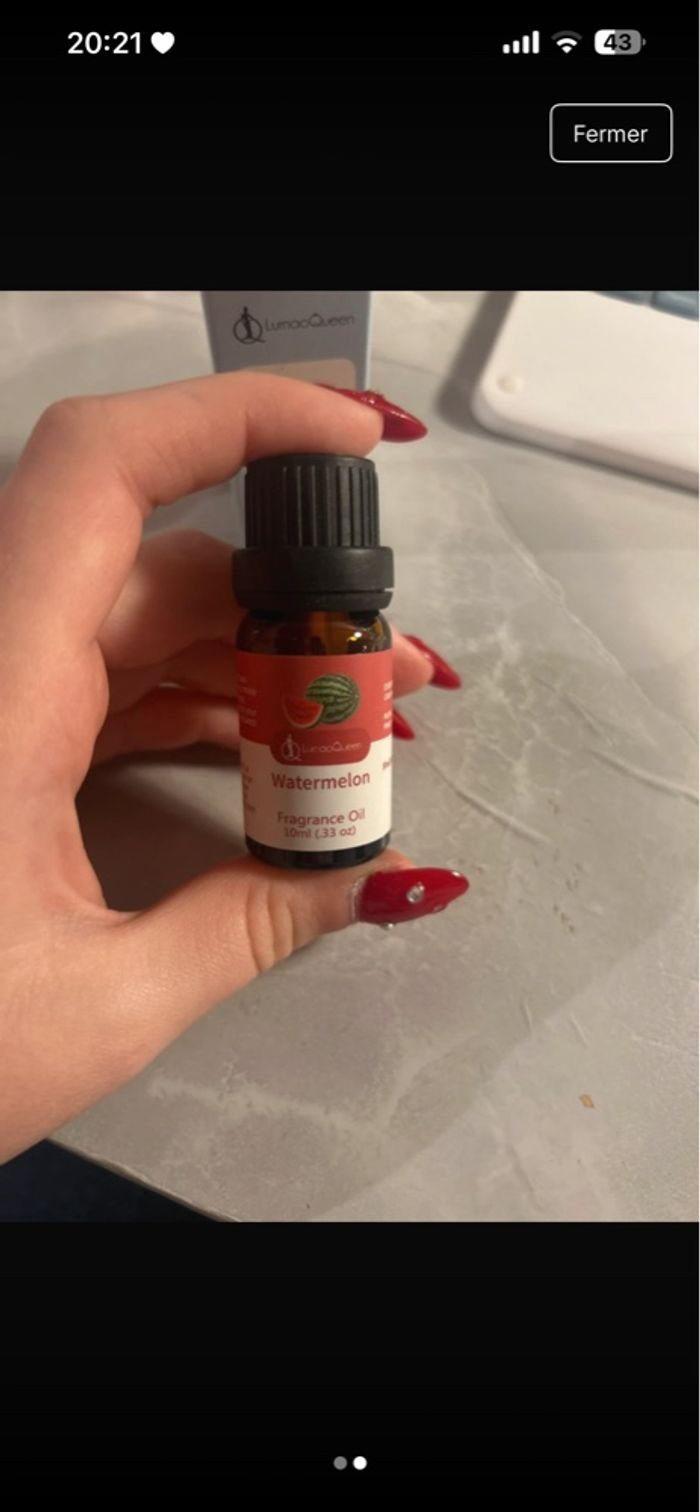 Huile essentielle senteur Pastèque de la marque LurnaoQueen, neuve avec étiquette. Ouvert seulement pour sentir le parfum, sinon jamais utilisée. Idéal pour la diffusion, la fabrication de bougies, ou vos projets DIY aromatiques fruités. 💰 Prix d’achat : 1,72 €