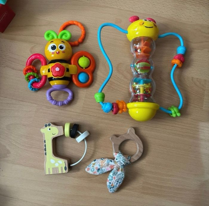 Hochet en bois girafe Hochet en bois ours Hochet en plastique abeille et papillon
