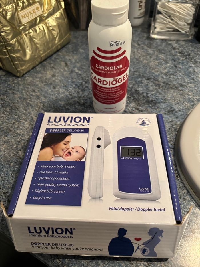 Doppler Luvion Deluxe-80 - Écouter le cœur de bébé ! Doppler de qualité supérieure pour un son clair à partir de 12 semaines Vous cherchez un doppler DE QUALITÉ pour écouter votre bébé avant sa naissance ? Le Doppler Luvion Deluxe-80 est un appareil sûr et facile à utiliser, spécialement conçu pour une utilisation à domicile afin d'entendre le cœur de votre bébé. Cela peut être fait dès 12 semaines. Ce Deluxe-80 de la marque néerlandaise Luvion est fabriqué avec les meilleurs composants et dispose d'un écran LCD sur lequel vous pouvez lire le nombre de battements de cœur de votre enfant. Pour que vous puissiez écouter les battements de cœur de votre enfant à naître ! En outre, les mouvements et le hoquet du bébé peuvent être entendus dès la douzième semaine de grossesse. Il vous suffit de mettre du gel ou de la lotion corporelle sur votre ventre, d'allumer le Doppler Luvion, de mettre les écouteurs GRATUITS et vous entendrez votre miracle à venir ! L'emballage contient également un tube de gel doppler Luvion de qualité. Le Luvion Doppler Deluxe-80, certifié médical, est très compact avec une caisse de résonance extrêmement efficace et est donc facile à emporter partout. Cela peut également se faire en connectant le câble d'enregistrement à votre ordinateur. Le son est ensuite enregistré numériquement et peut facilement être transmis aux membres de la famille ou à d'autres parties intéressées. Ce doppler est bien sûr agréable pour vous, mais c'est aussi un cadeau extraordinaire. Remarque : il peut s'écouler un certain temps avant que vous n'entendiez les battements de cœur de votre bébé. Cela dépend de la position du bébé et de la clarté avec laquelle les battements du cœur sont audibles. Certes, dans la première phase (semaines 12-14), cela peut prendre un certain temps. Le kit comprend le Doppler fœtal, une paire d’écouteur, un câble audio et j’offre un tube de gel à ultrason date péremption 07/2027