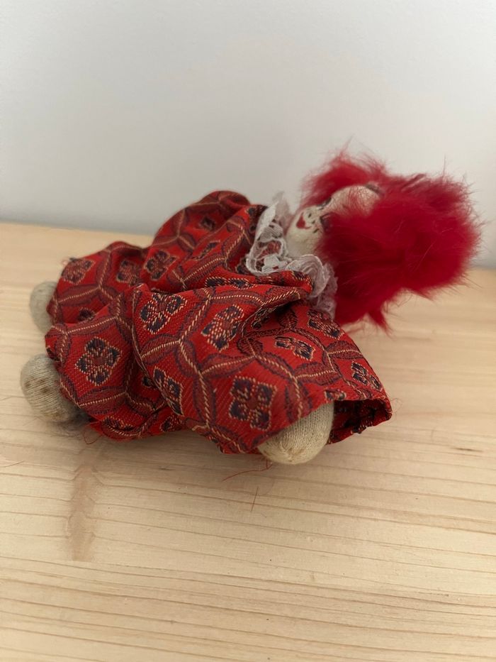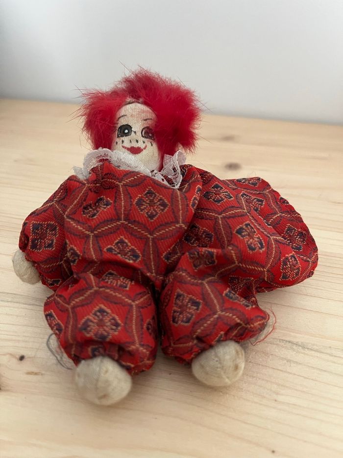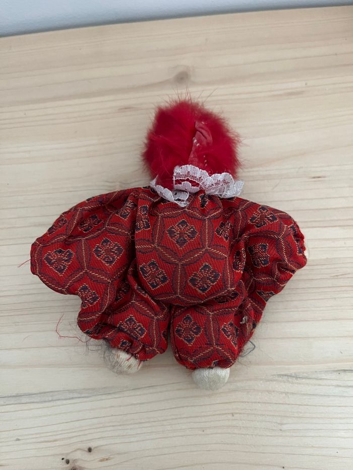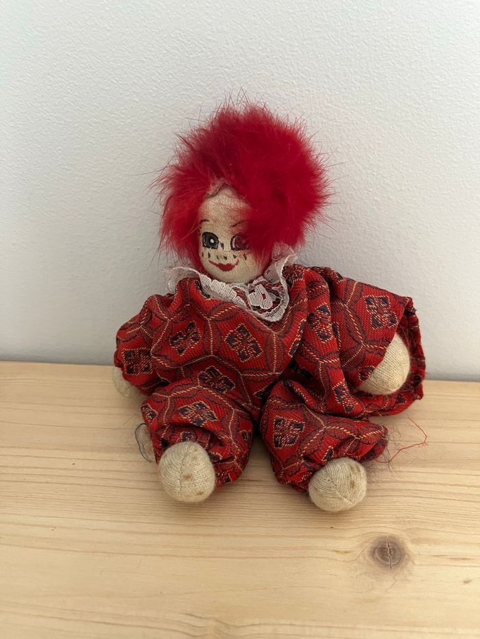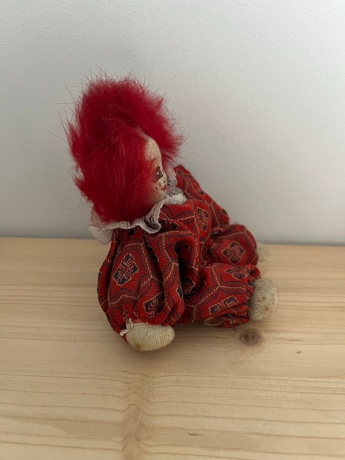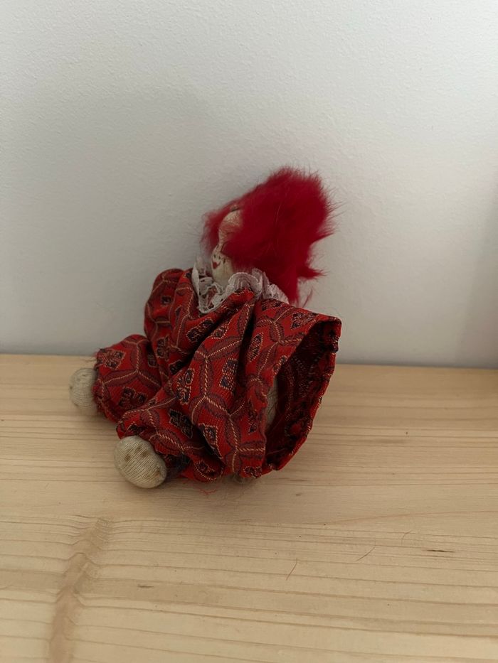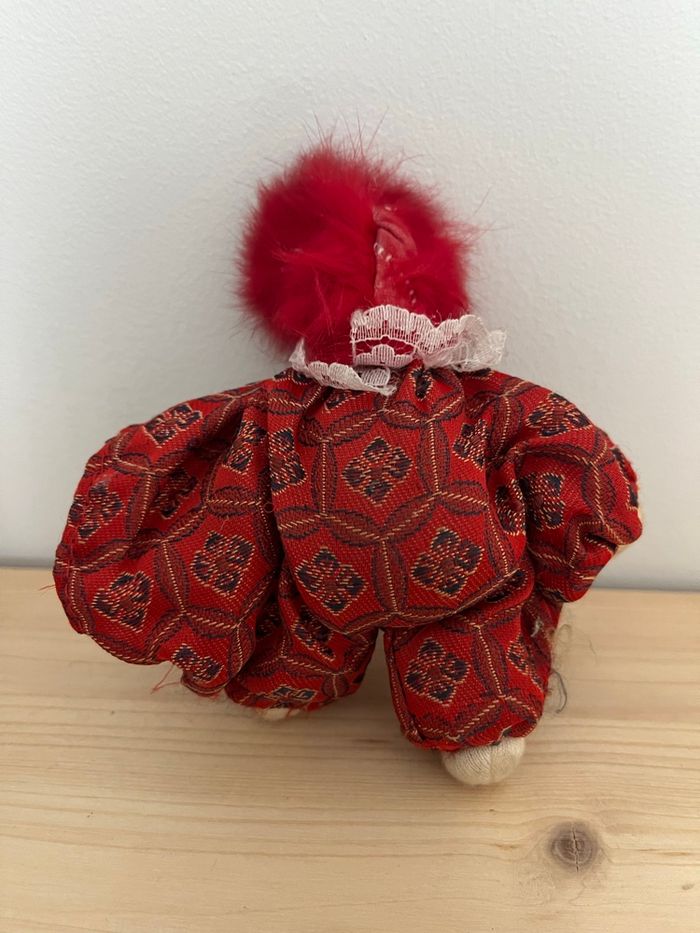 Je vends ce clown décoratif aux couleurs vives et au look unique. - Type de produit : Bibelot décoratif - Dimensions : environ 11 x 8 cm - les cheveux rouge sont abîmés, le vêtement sur un bras il manque l’élastique pour maintenir le vêtement serré. (Voir photo) État satisfaisant N'hésitez pas à me contacter pour plus d'informations ou de photos. Envoie rapide et soigné