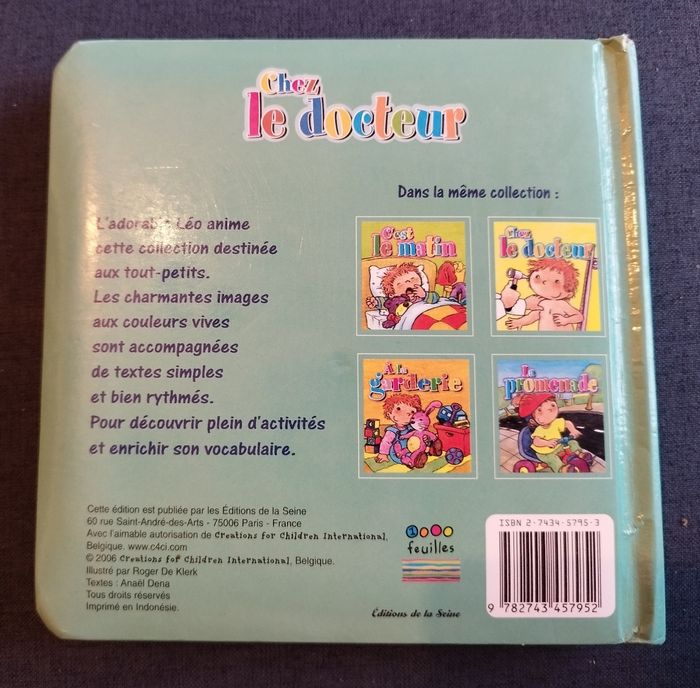 Je vends ce livre pour enfants "Chez le docteur" - Titre : Chez le docteur - Genre : Livre pour enfant - Éditeur : Éditions de la Seine Très bon état N'hésitez pas à me contacter pour plus d'informations !