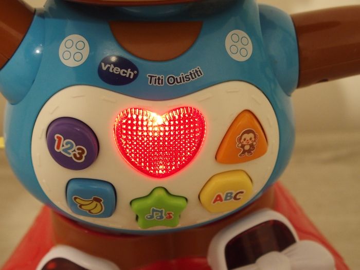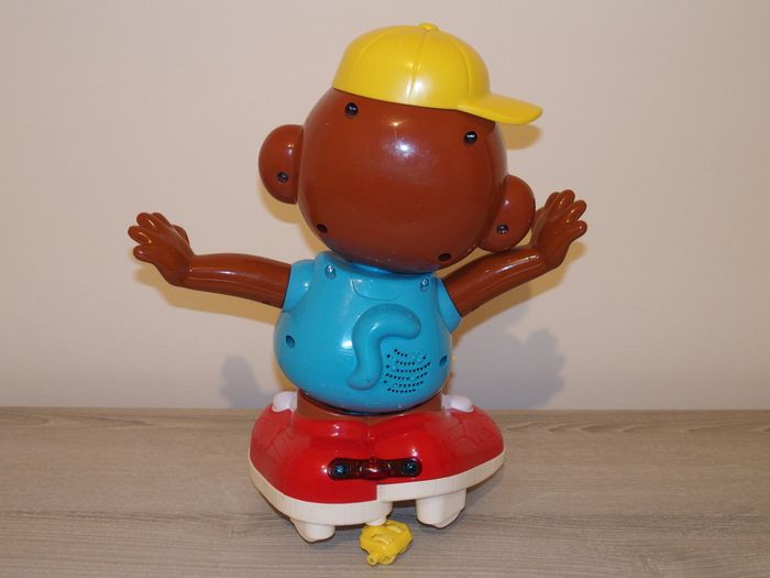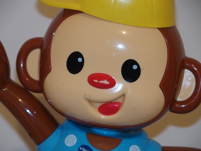 Titi Ouistiti est un petit singe qui chante et qui danse. Il se déplace d'avant en arrière, tourne etc ... Il incite bébé a venir jouer et danser avec lui. Etat normal d'utilisation mais rien de cassé. Il fonctionne parfaitement. Je laisse les piles avec.