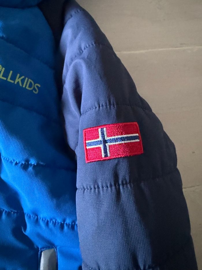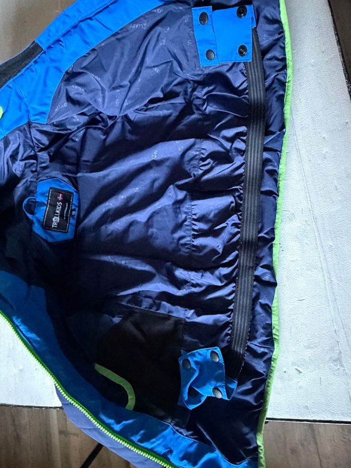 Veste de ski pour tes 5 fois . Taille 6 ans /116 cm Comme neuf imperméabilité chaleur Perméabilité à la transpiration MVTR 6000/m2/24h 2 grandes poches main 1 poche forfait et 1 poche filet intérieur. Jupe pare-neige, manchons et passe-pouce en bas de manche pour limiter l'entrée