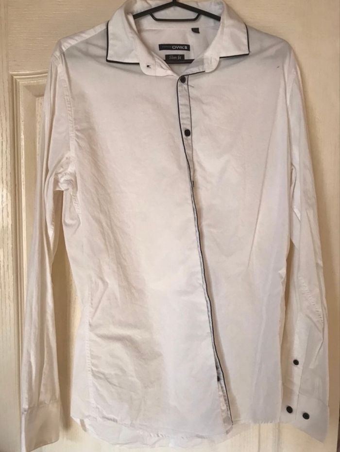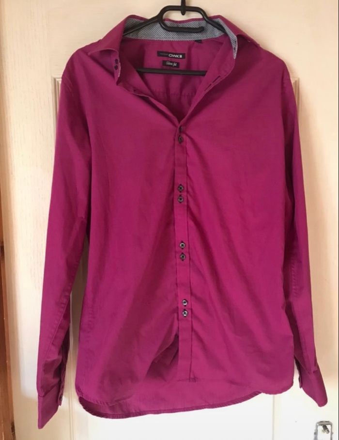 Vend un lot composé de 2 Chemises de la marque OWK en excellent état. Une est de couleurs fushia et l’autre de couleurs blanche Taille 39-40. Et également un pantalon de costume noir lui aussi en très bon état, taille 36 de la marque OWK Le lot est indissociable