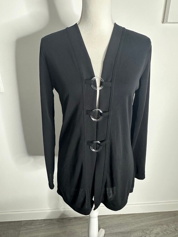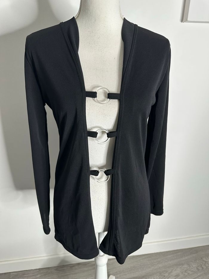 Blouse - Excellent état - Taille 40 équivalent L Dimensions en bas de l’annonce - Couleur noire - Y2K, années 2000’ - Marque 1999 Paris - Anneaux en plastique à l’avant - Tissus légèrement transparent - Fabriqué en France 🇫🇷 - Polyester et Lycra Dimensions: - 50 à 58cm niveau aisselles - 70cm de long