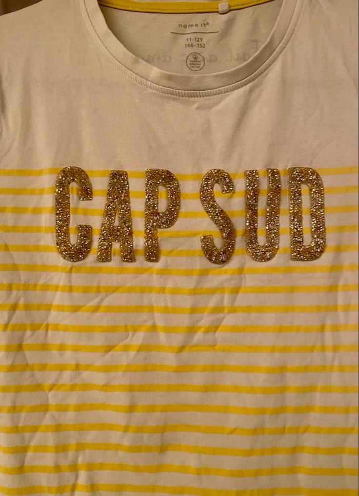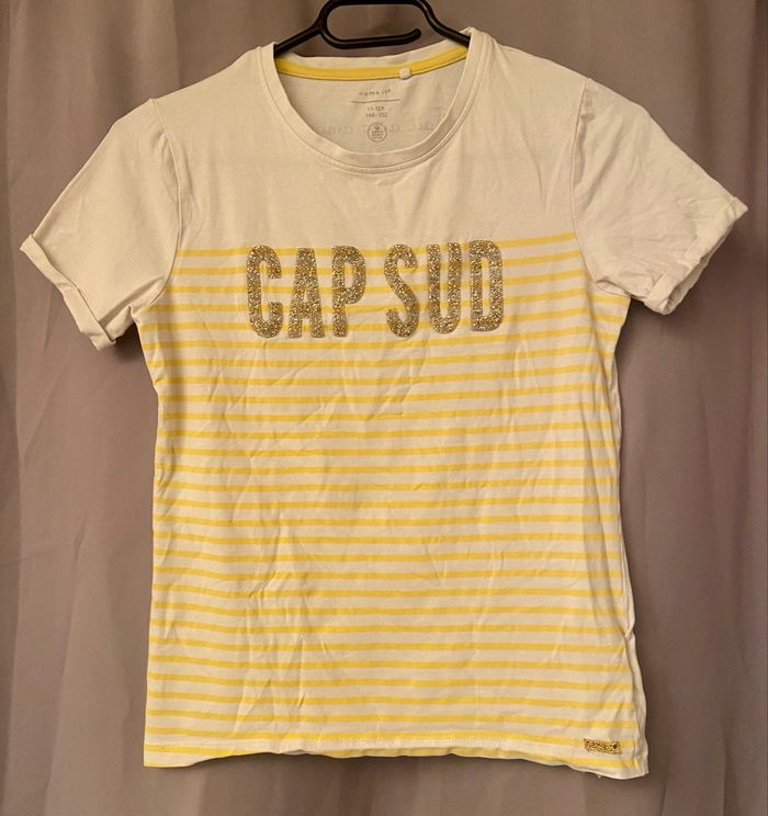 Tee-shirt rayé »Name It »jaune et blanc,taille 11/12ans en très bon état. Si vous avez le moindre doute, n’hésitez pas avant achat de me demander les mesures ou renseignements afin d’éviter tous désagréments. PS:Tous les vêtements sont lavés et repassés avant chaque envoi. 🔥🔥Réduction sur les lots activée🔥🔥 -5% de remise pour 2 articles. -10% de remise pour 3 articles. -20% de remise pour 5 articles.