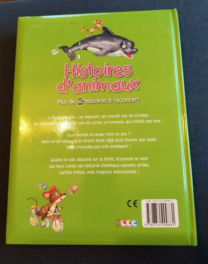 Je vends ce recueil de 60 histoires d'animaux, un livre pour enfants. - Titre : 60 histoires d'animaux - Genre : Livre pour enfant - Nombre d'histoires : 60 Très bon état N'hésitez pas à me contacter pour plus d'informations !