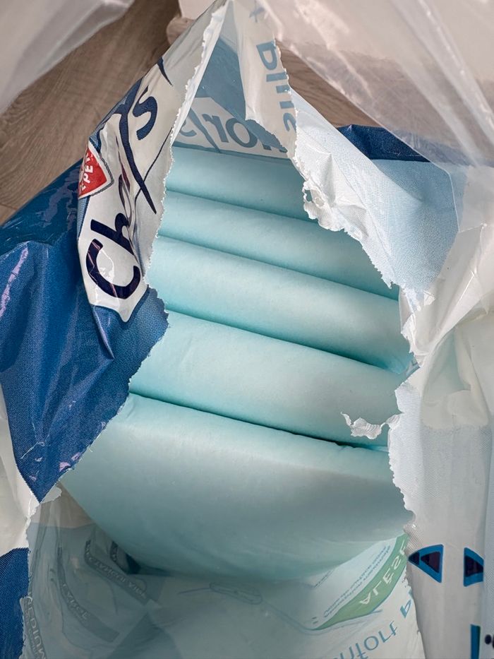 Lot composé de : - 2 boîtes neuves de sac à couches (2*100 pièces) - 1 paquet d’alèse ouvert il reste 17 pièces sur 40. Taille 40*60 cm. - 1 paquet d’alèse ouvert il reste 5 sur 16. Taille 60*90 cm (grand format). Très pratique pour protéger le matelas à langer ou le lit (début de la propreté). Possibilité de remise en mains propre sur Boulay, saint Avold, Metz, Creutzwald ou Carling. Maison non fumeur et sans animaux. Je vends également des couches Taille 4+ et 5 ainsi que des couches de bain/ piscine. Nous vendons ces couches et produits pour le change car notre fille a été propre du jour au lendemain.