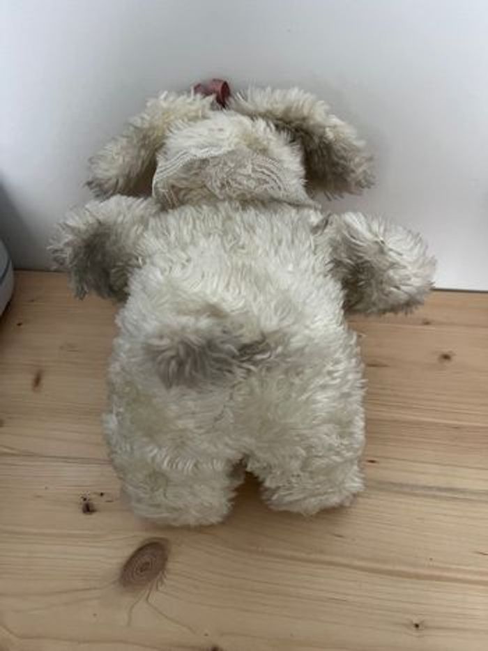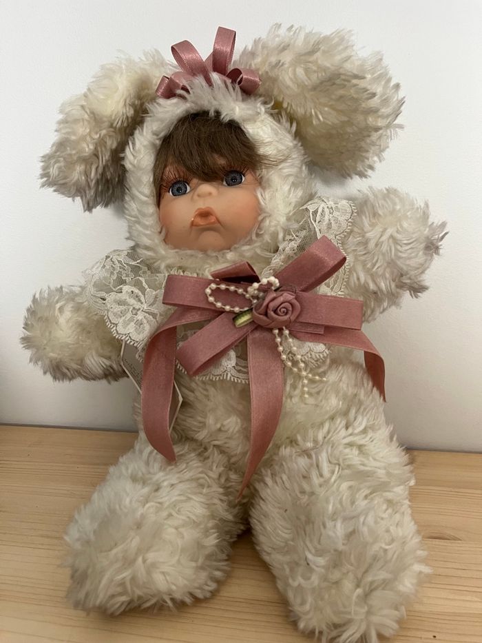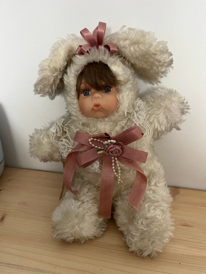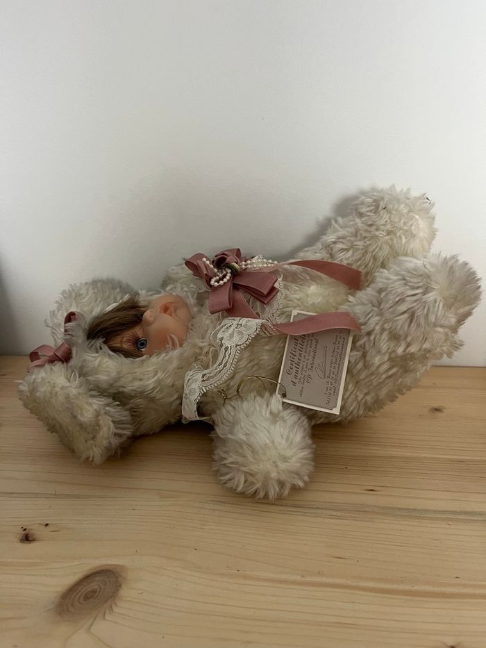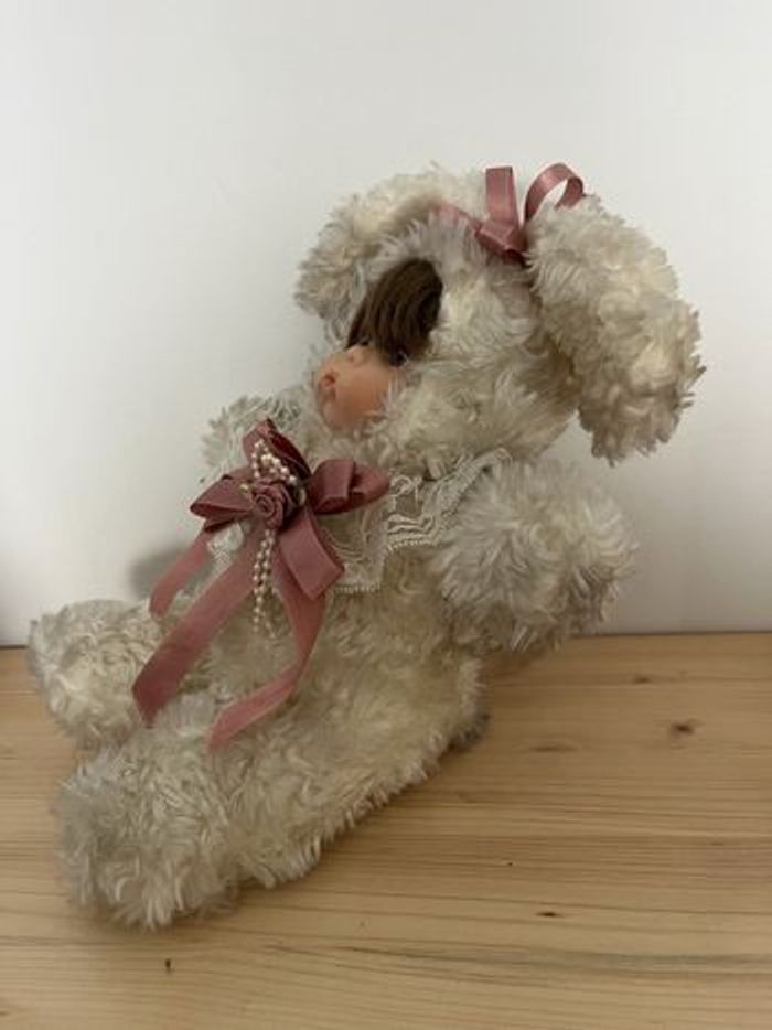 Je vends cette adorable peluche d'ourson. - Type de produit : Bibelot - Matière : Céramique - Couleur : Blanc (la partie douce blanche et grise par endroits car il a pris la poussière) - Dimensions : environ 25 x 22 cm - L’élastique de la dentelle autour du cou n’est plus élastique État satisfaisant N'hésitez pas à me contacter pour plus d'informations ou de photos. Envoie rapide et soigné