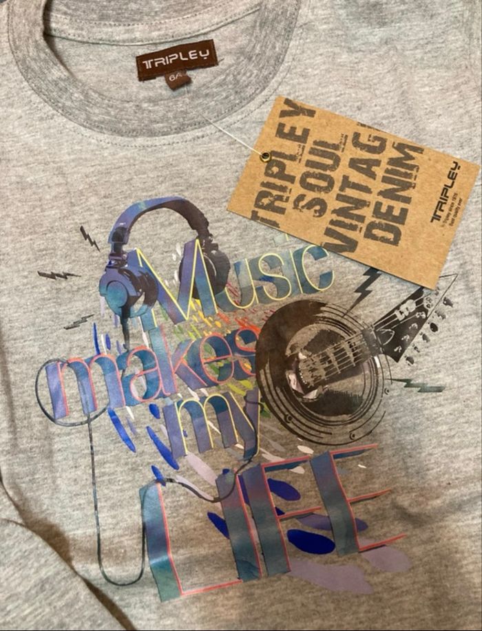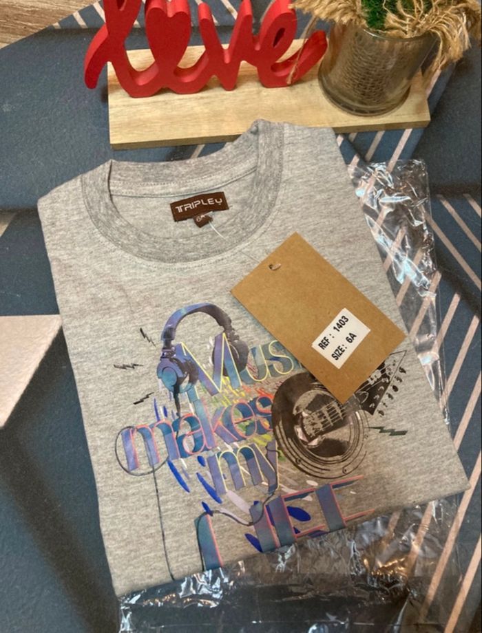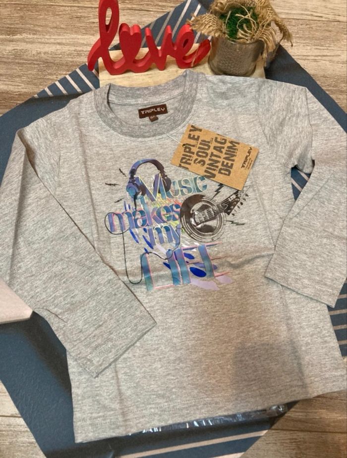 📦 t-shirt manches longues 🎨 gris Thème musique Taille 6 ans TRIPLEY 🚨remise sur lot activée ✨ envoi rapide et soigné