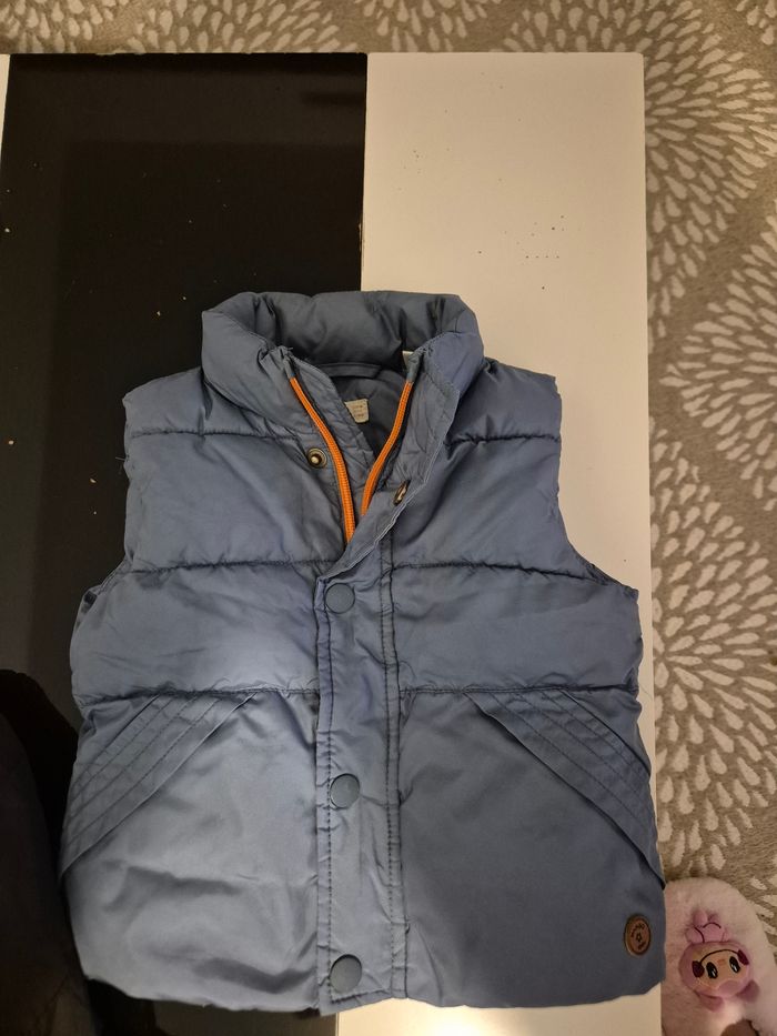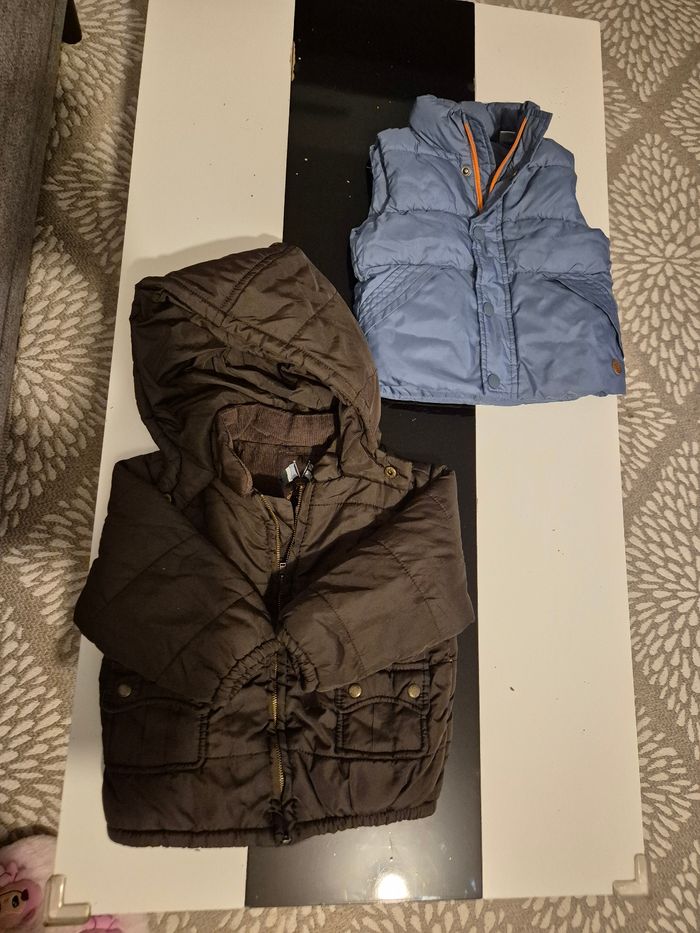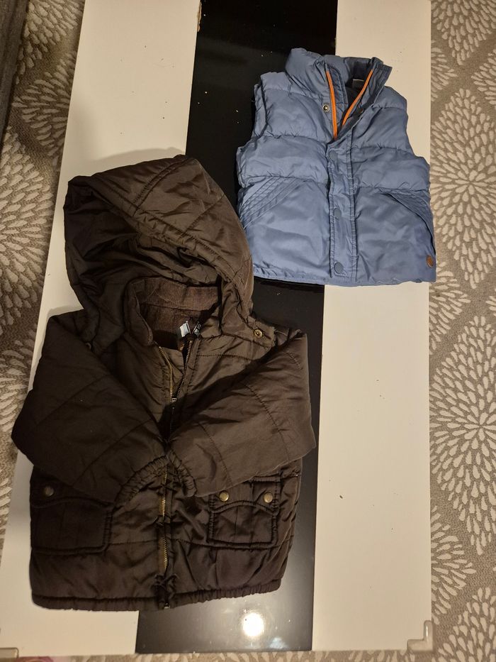 Lot de deux doudoune la bleu sans manche est de la marque Mango. Et la marron jacadi