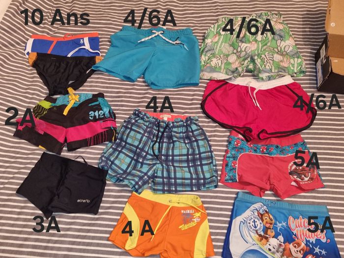 2 Euros le lot de maillots et shorts de bain, taille du 2 au 10 ans, possibilité de vendre a l'unité