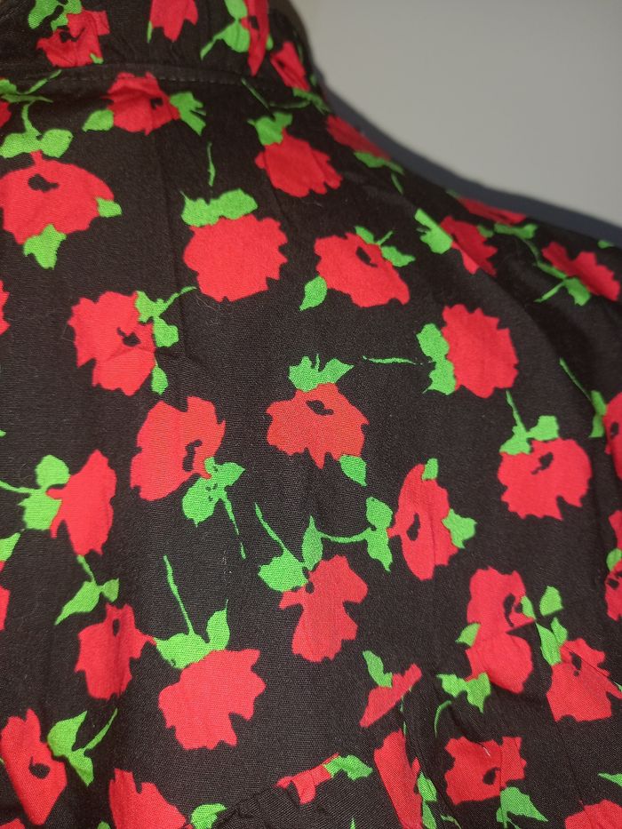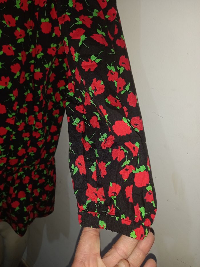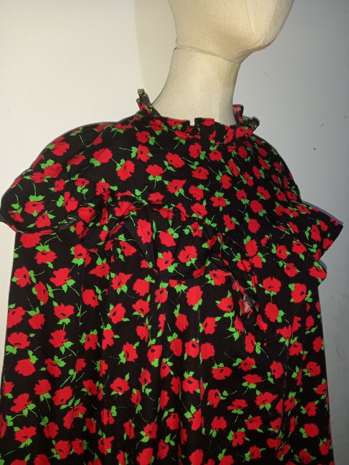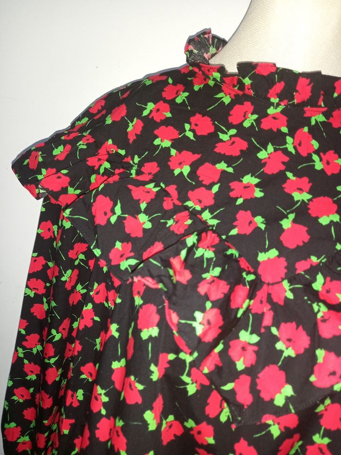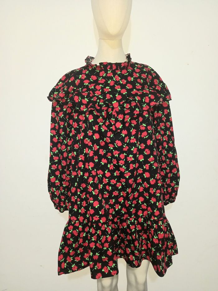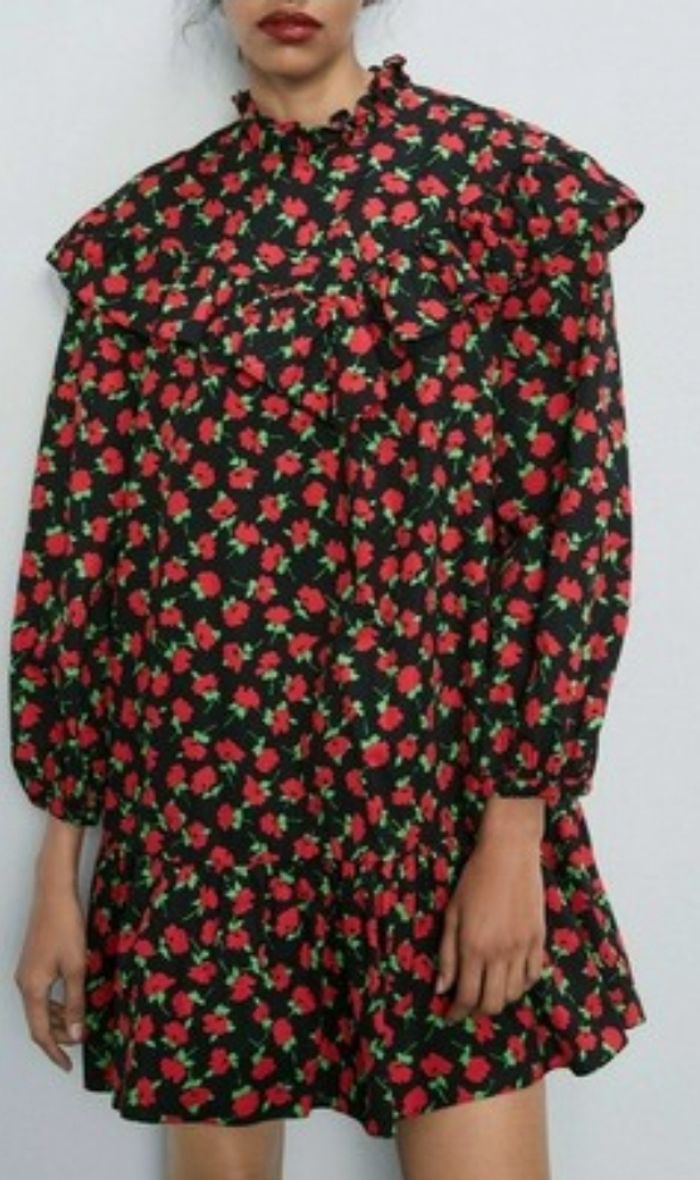 MINI ROBE ZARA COL HAUT NOIR ROUGE IMPRIMÉ FLORAL AVEC VOLANTS TAILLE M