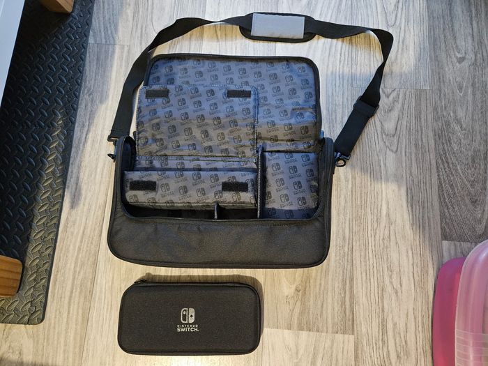 Cette sacoche de transport permet de transporter le système complet Nintendo Switch. Elle intègre en plus un étui de rangement amovible pour la console en version portable. Nombreux compartiments pour transporter sans risque tous les éléments de la console Sangle d'épaule ajustable et rembourrée pour un confort de transport idéal.