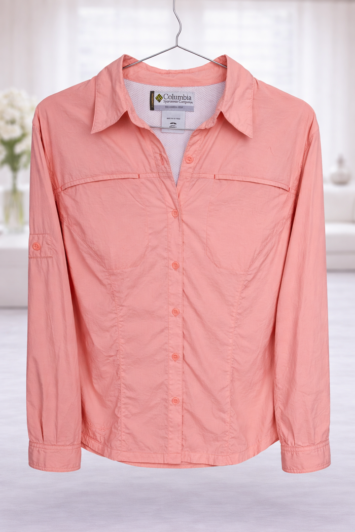 🌸 Chemise Columbia Titanium – Femme – Taille S Chemise Columbia Titanium originale, conçue pour les activités outdoor exigeantes : randonnée, voyage, trekking ou usage quotidien confortable. Coloris rose saumon doux et lumineux, très flatteur et facile à associer. ✔️ Gamme Titanium : ligne technique haut de gamme Columbia ✔️ Matière légère, respirante et à séchage rapide ✔️ Manches longues avec pattes de maintien pour les retrousser facilement ✔️ Boutonnage frontal ✔️ Coupe féminine et ergonomique, pensée pour le mouvement ✔️ Confort optimal, idéale par temps chaud ou en superposition 👩 Pour : Femme 📏 Taille : S 📐 Mesures à plat : - Largeur aisselle à aisselle : 50 cm - Longueur totale : 63 cm