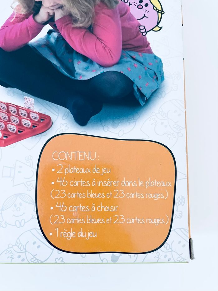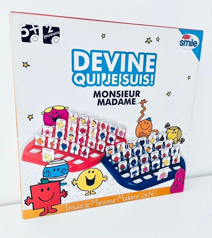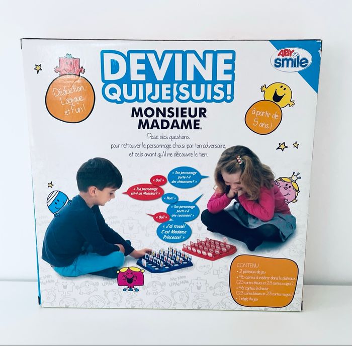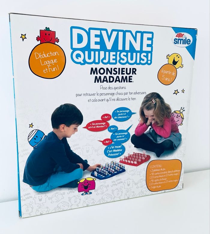 Jeu Devine qui je suis ! Monsieur Madame Article neuf avec étiquette, scellé, jamais ouvert Qui suis-je ? Découvrez-le avec ce jeu spécial d'observation et de déduction : Devine Qui je suis ! Monsieur, Madame d'Educa ! Chaque joueur essaie de deviner quel est le Monsieur Madame sélectionné par son adversaire. Pour cela, il lui pose des questions. Ton personnage porte-il des lunettes ? Ton personnage porte-il un chapeau ? Sur les cartes figure une phrase qui aide le joueur à interagir avec l'autre joueur et à découvrir quel est le personnage caché. Idéal pour encourager le développement du langage, de la déduction et de l'observation chez les enfants dès 5 ans. Contenu : 2 tableau 48 cartes pour chaque joueur 24 cartes pour piochés. 2 joueurs.